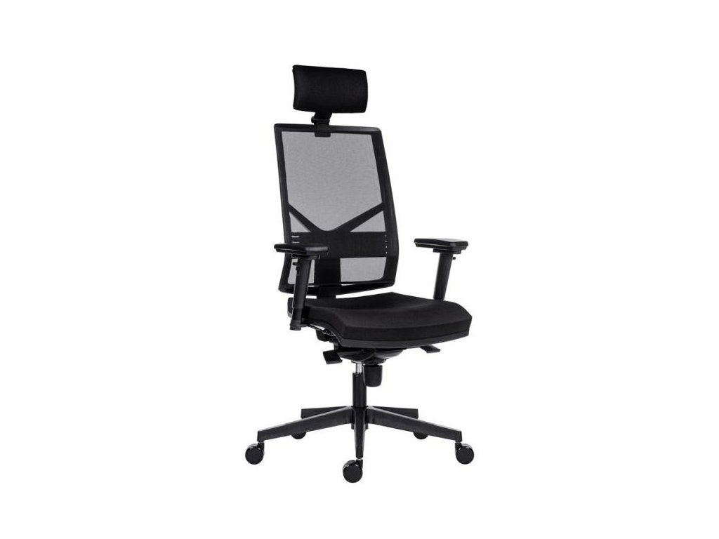 Kancelárska stolička, operadlo so sieťovinou a výškovo nastaviteľnou bedrovou výstuhou.
