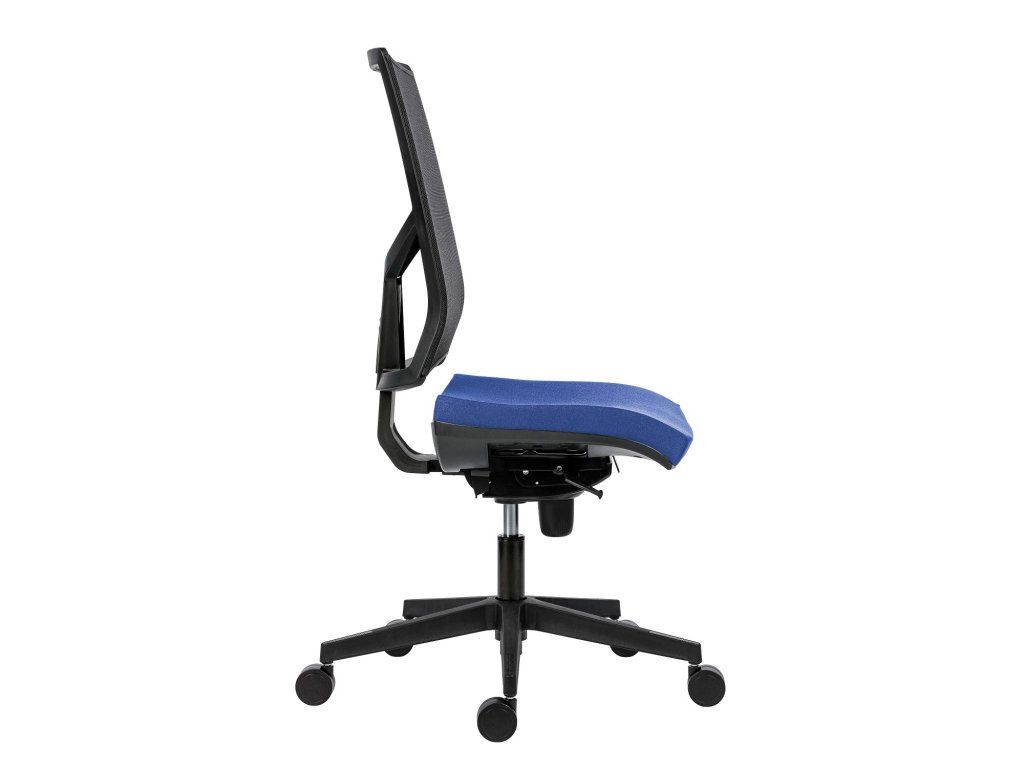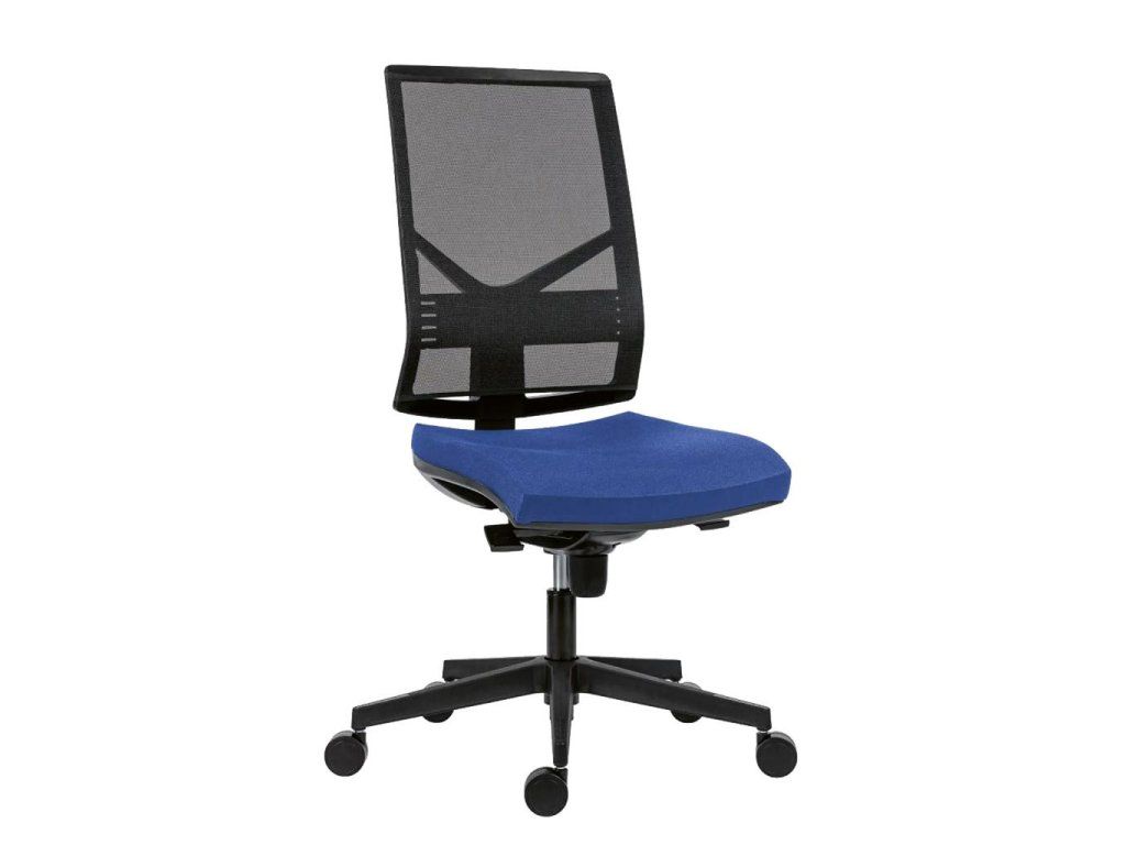 Kancelárska stolička, operadlo so sieťovinou a výškovo nastaviteľnou bedrovou výstuhou.