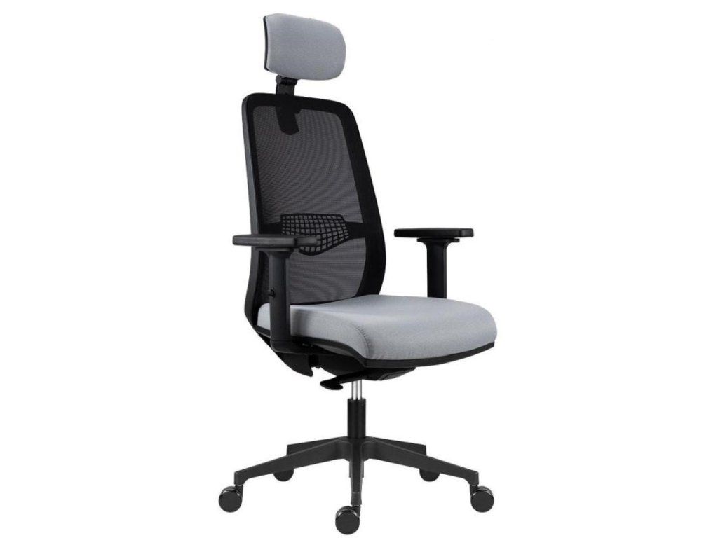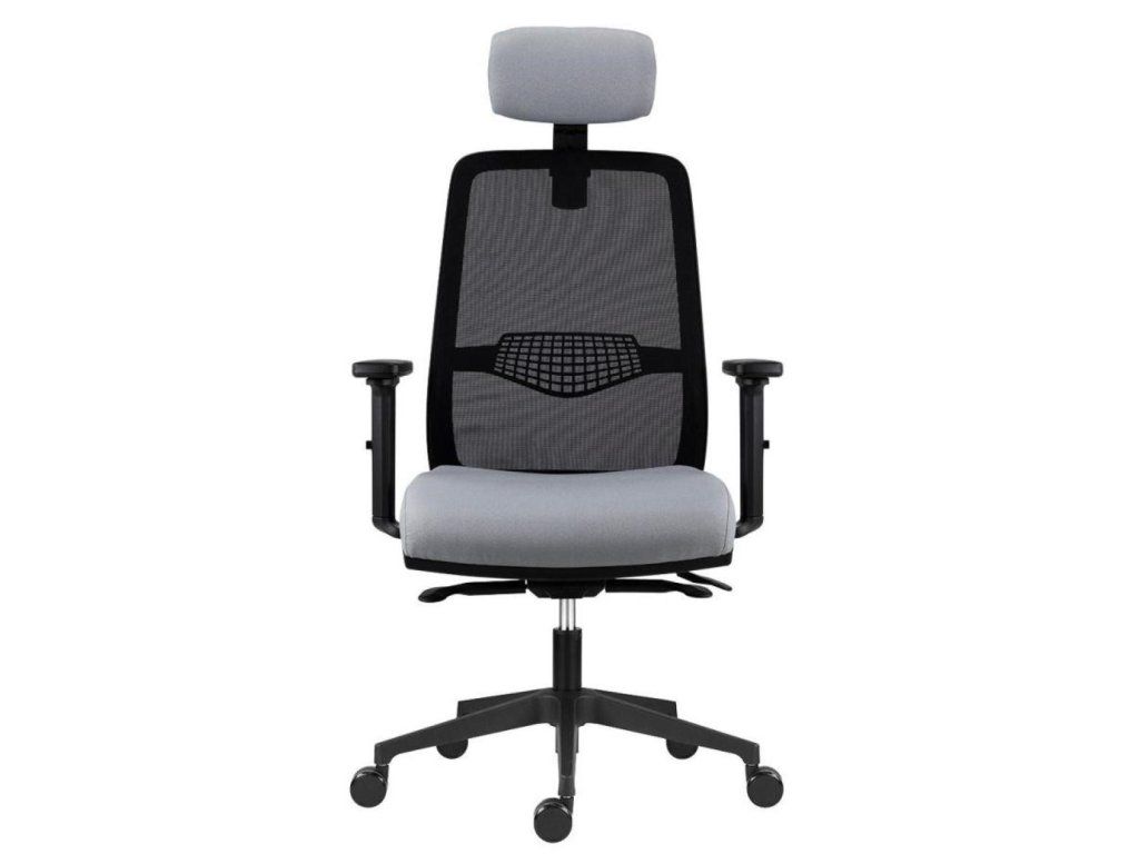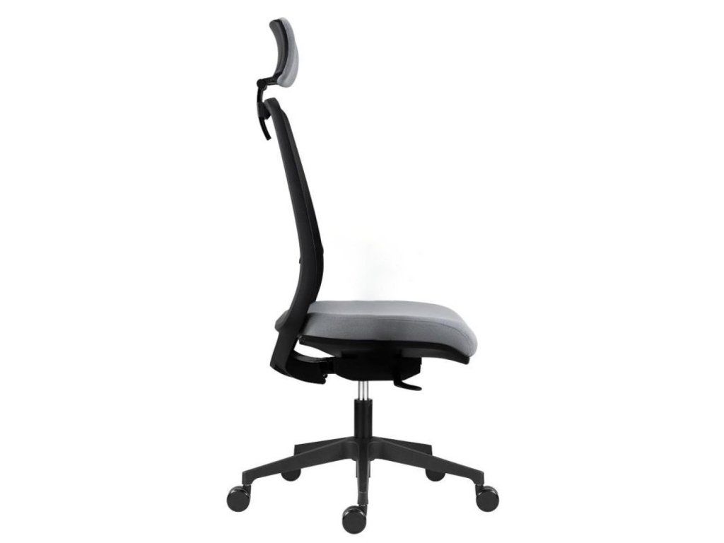 Kancelárska stolička Tullio s čiernou sieťovinou na operadle, podhlavníkom a nastaviteľnou bedrovou výstuhou, bez podrúčok.