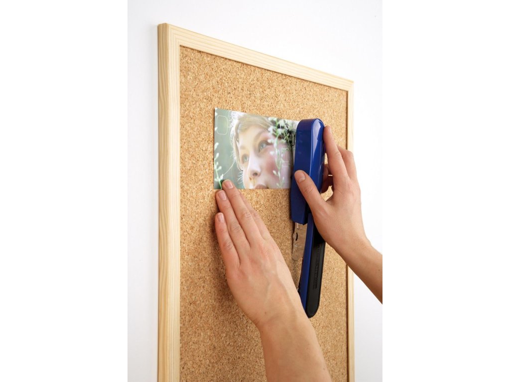 Stolová zošívačka s veľkou kapacitou súčasne zošitých listov so systémom plochého zošívania (Flat-Clinch), umožňujúca superľahké zošívanie. Kovový zásobník s dvojitým vedením spiniek. Kapacita náplne 100 spiniek 24/ 6 - 8 alebo 150 spiniek 26/ 6 - 8. Hĺbka zošívania 6 cm. Hmotnosť 245 g. Záruka 25 rokov.Farba: modrá