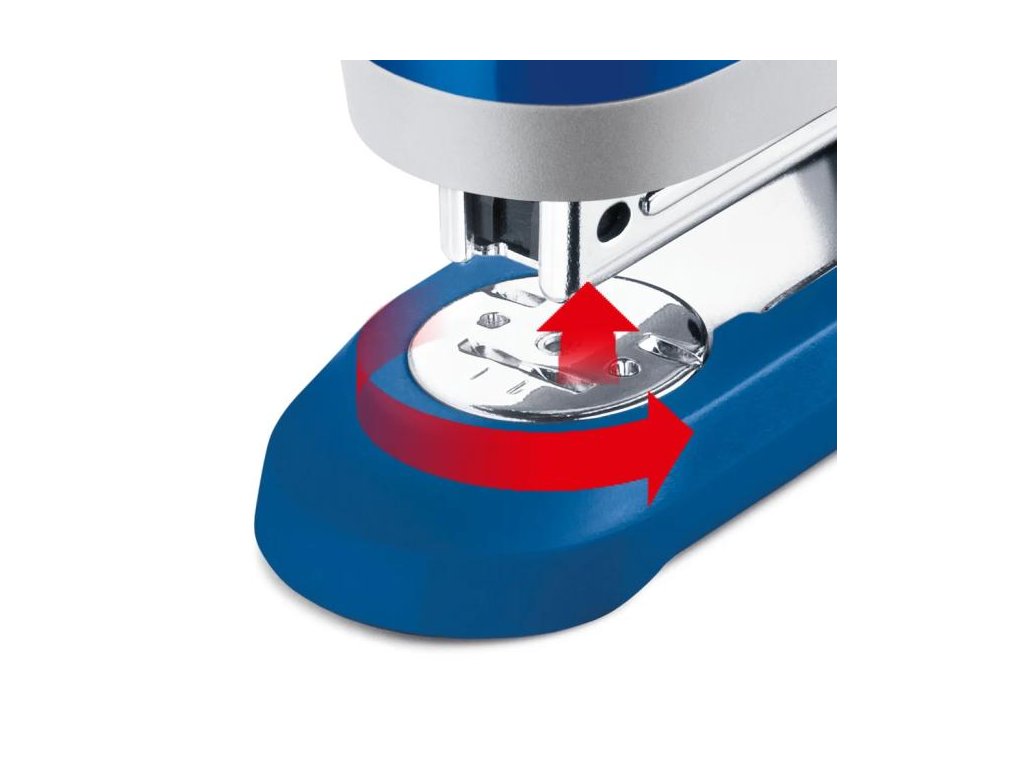 Užitočná celokovová kancelárska zošívačka na každý písací stôl z kolekcie Evolution so stabilnou protišmykovou spodnou časťou. Plastový vrchný diel, integrovaná plastová rozošívačka na zadnej časti, otočná matrica pre otvorený a uzavretý spôsob zošívania. Kapacita náplne 100 spiniek veľkosti 24/6, resp. 150 spiniek veľkosti 26/6. Kapacita zošitia 25 listov papiera. Hĺbka zošívania 5,3 cm. Hmotnosť cca 165 g. Záruka 10 rokov. Farba červená/sivá.Dodatočné parametre