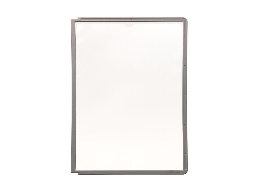 Displejový panel vyrobený z matného antireflexného polypropylénu pre systém Sherpa, kovové držiaky a rotačný stojan. Vložený materiál je kopírovateľný a skenovateľný. Pevný farebný rám s pozíciami pre indexy. Formát A4. Balenie 5 ks.Farba rámu: grafitová