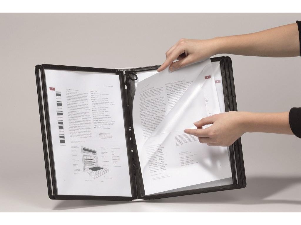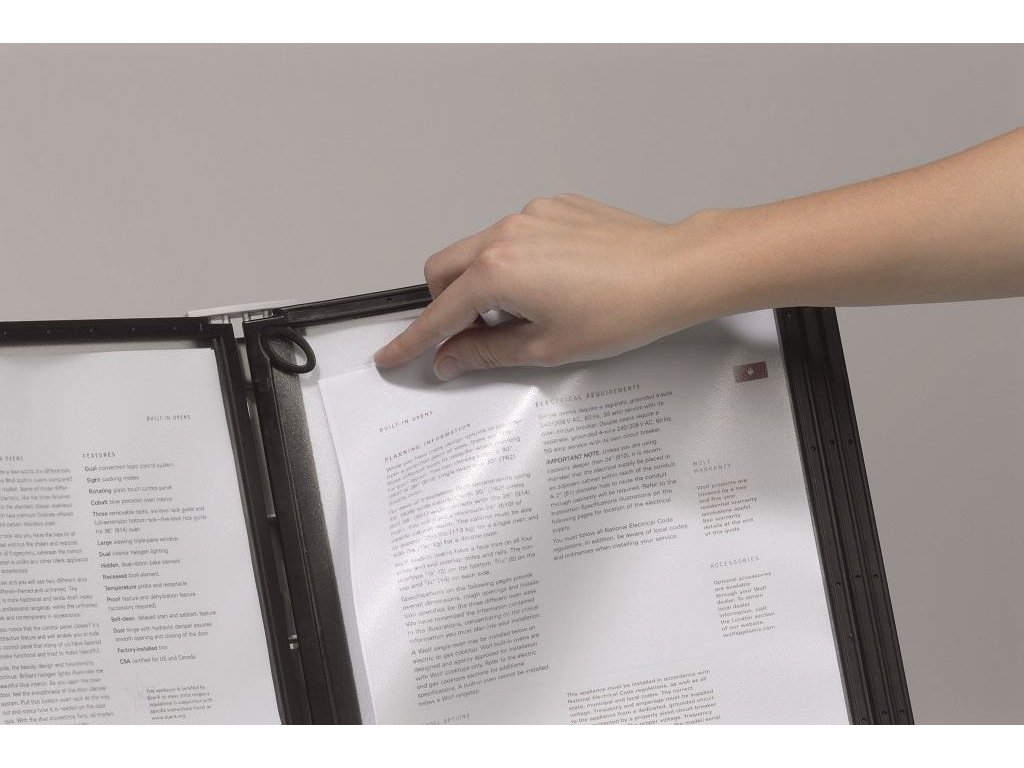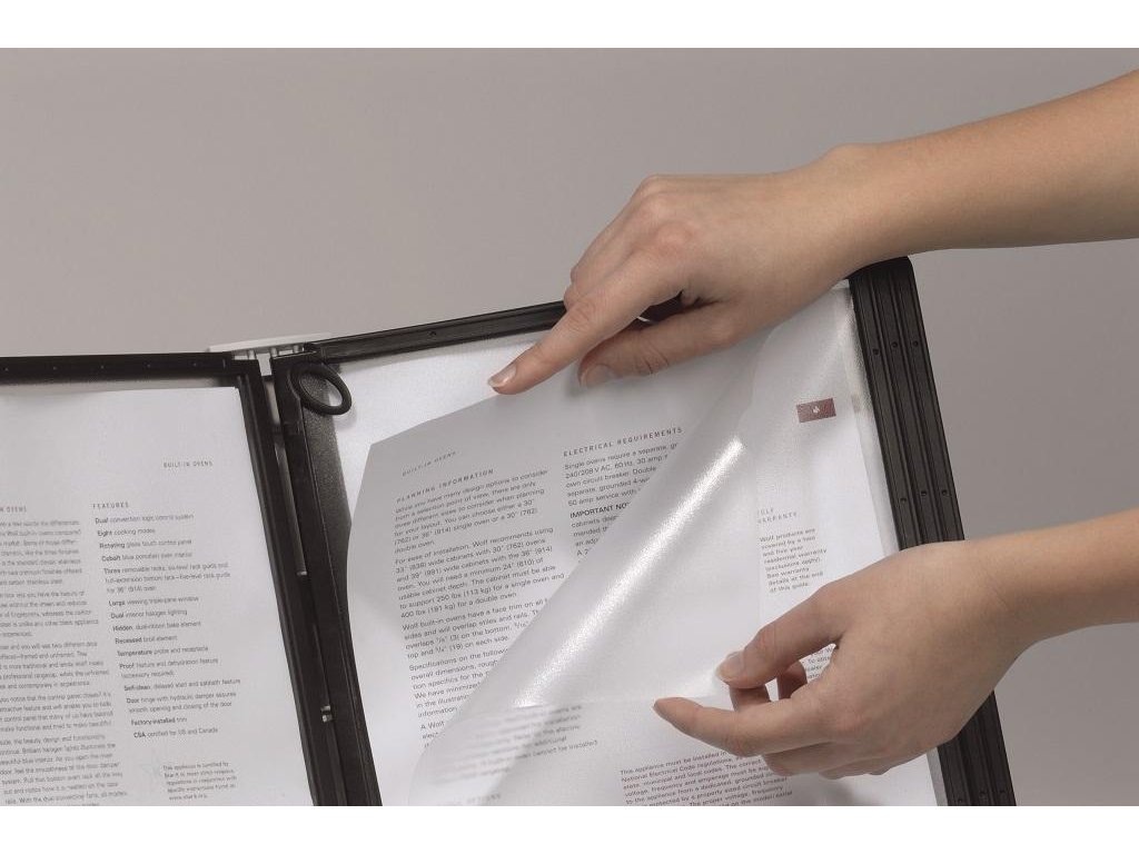 Displejový panel z matného antireflexného polypropylénu vhodný do systému SHERPA®, kovových držiakov a rotačného stojana. Ľahký prístup k výmene alebo vloženiu cenníkov, strán katalógu, ilustrácií a pod. Vložený materiál je kopírovateľný a skenovateľný. Pevný čierny rám s hornými a bočnými pozíciami na indexy. Formát A4. Väčšie balenie 5 ks.Dodatočné parametre