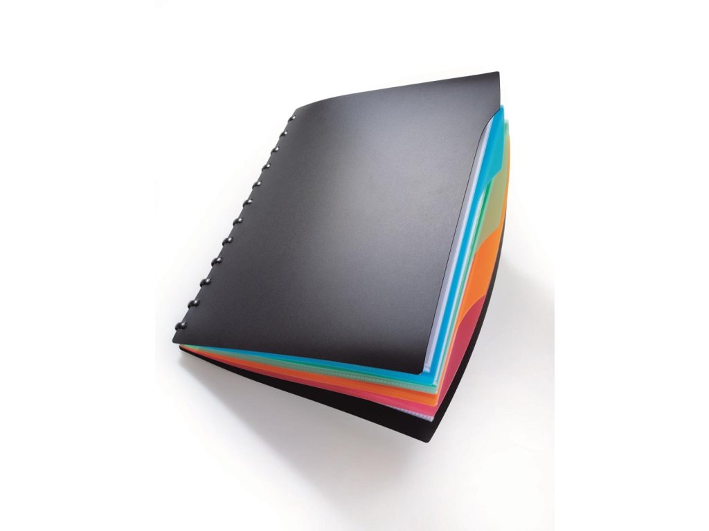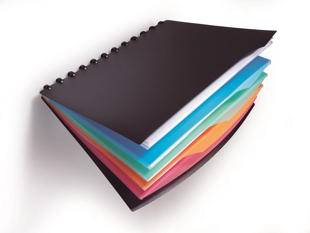 Štýlová katalógová kniha formátu A4 dodávaná s 20 obalmi a 4 farebnými rozraďovačmi. Rozšíriteľná náhradným balením obalov obj. kód DU2428 19 do maximálnej kapacity 35 obalov.Farba: čierna