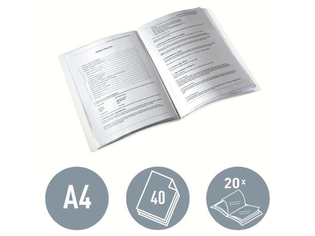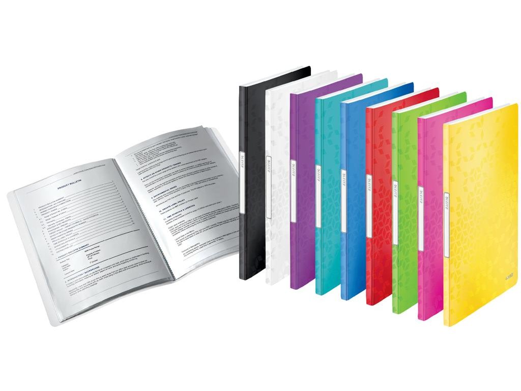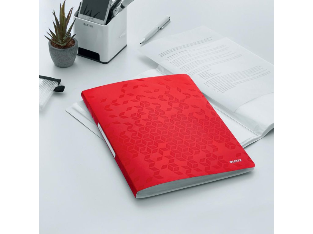 Katalógová kniha na prezentáciu dokumentov formátu A4, do ktorých sa často nahliada. Vyrobená z polypropylénu v dizajne WOW v žiarivej farbe. Vybavená 20 čírymi vreckami hrúbky 45 mic. a samolepiacou chrbtovou etiketou na popis. Väčšie balenie 10 ks. Kapacita 40 listov. Rozmery (š × v × h) 231 × 310 × 13 mm. Farba červená.Dodatočné parametre