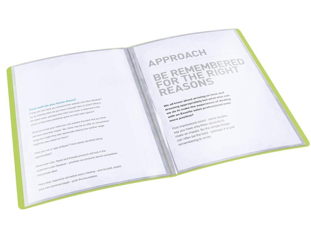 Mäkká katalógová kniha vo sviežich farbách so štvorčekovaným dizajnom VIVIDA. Vyrobená z priehľadného polypropylénu hrúbky 0,36 mm. Ideálna pre prezentáciu či uloženie dokumentov, ktoré sú vystavené častému prezeraniu.- 20 integrovaných obalov pre prezentáciu dokumentov