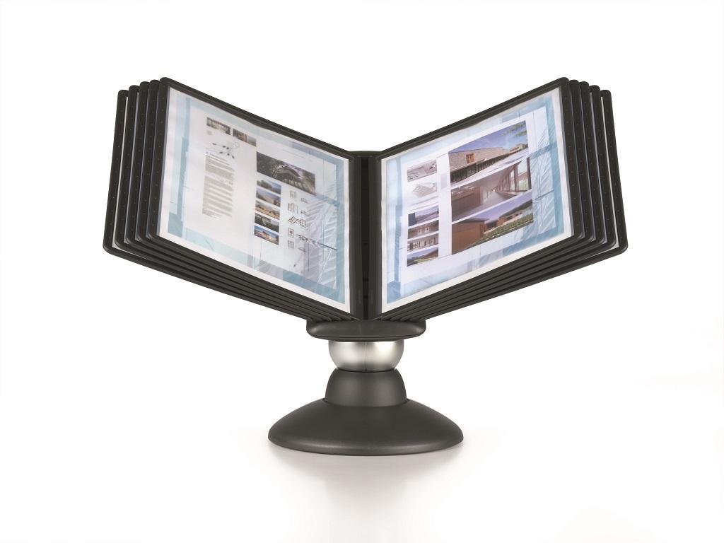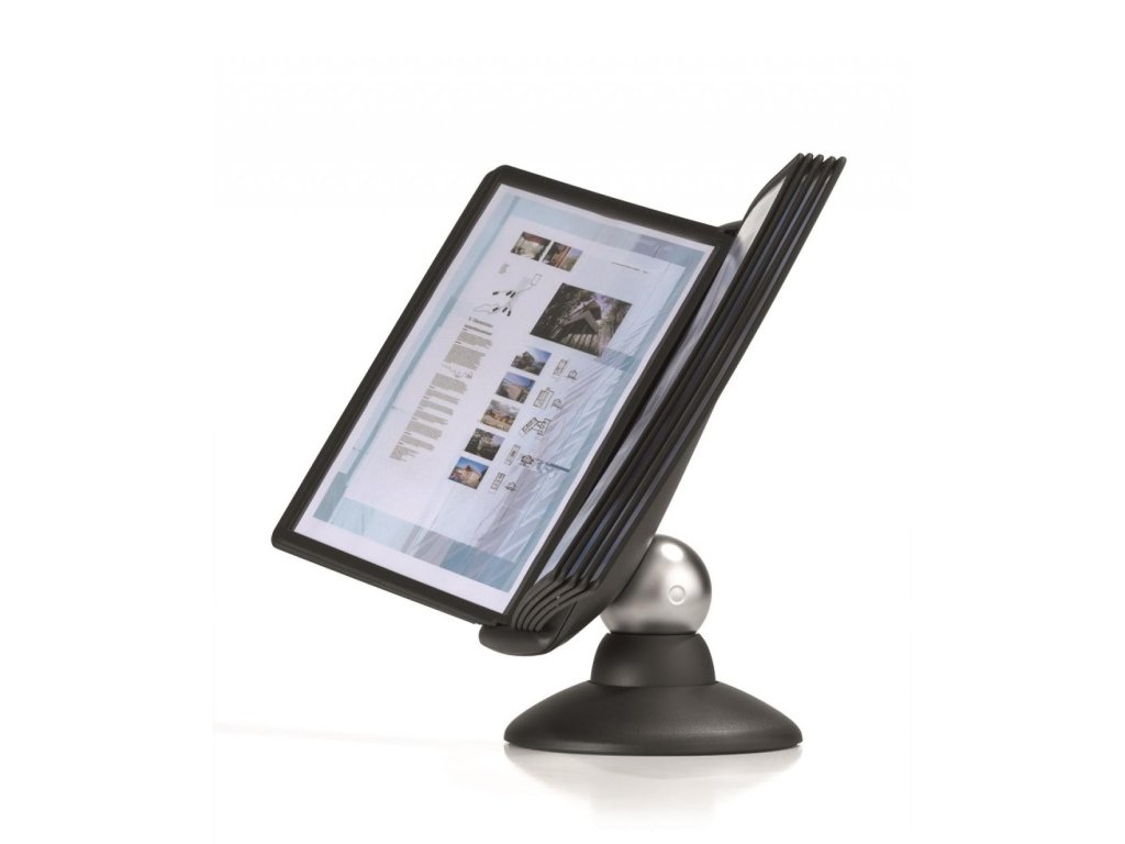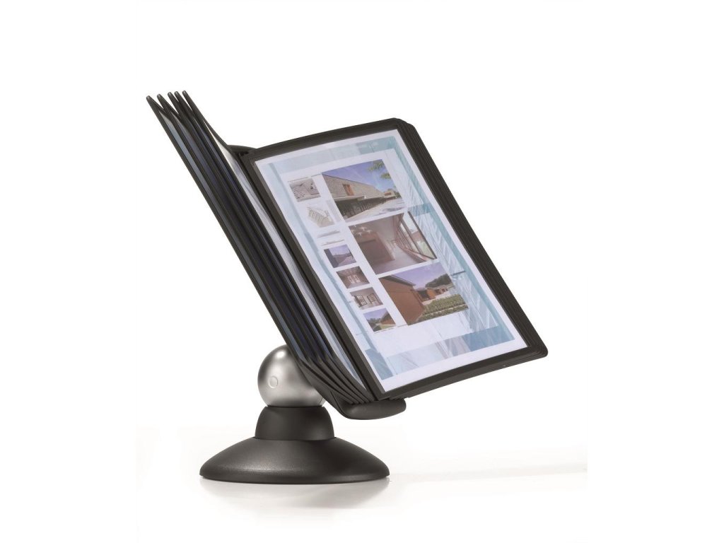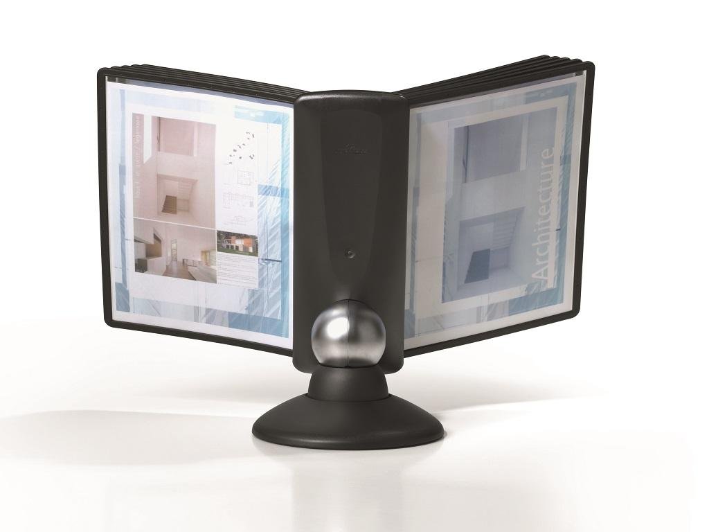 Unikátny dizajn spojený s kreatívnosťou a funkčnosťou stojana na stôl. Dodávaný s 10 panelmi. Guľový kĺb zabezpečuje bezproblémové otáčanie panelov o 360 °, uhol na čítanie nastaviteľný medzi 25 ° a 70 °. Farba čierna.Dodatočné parametre