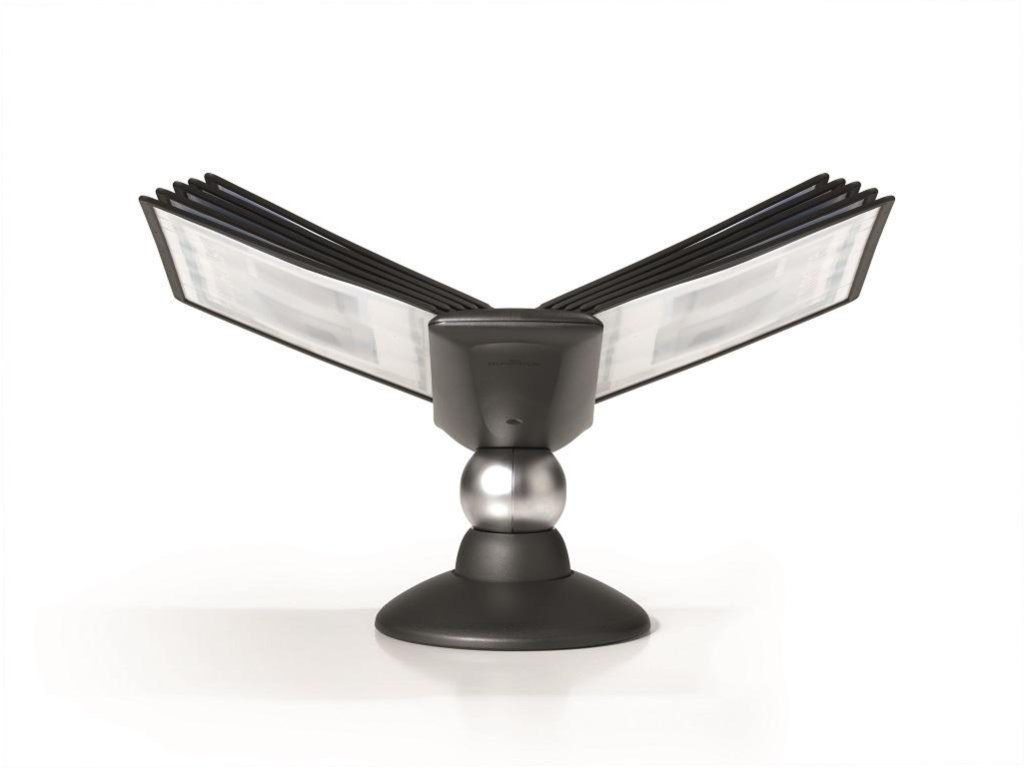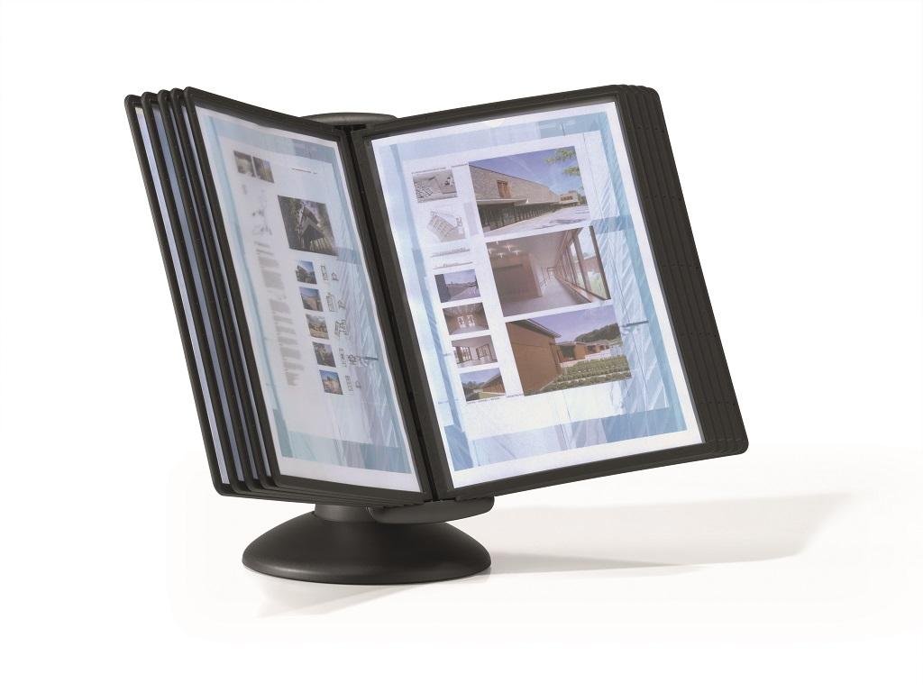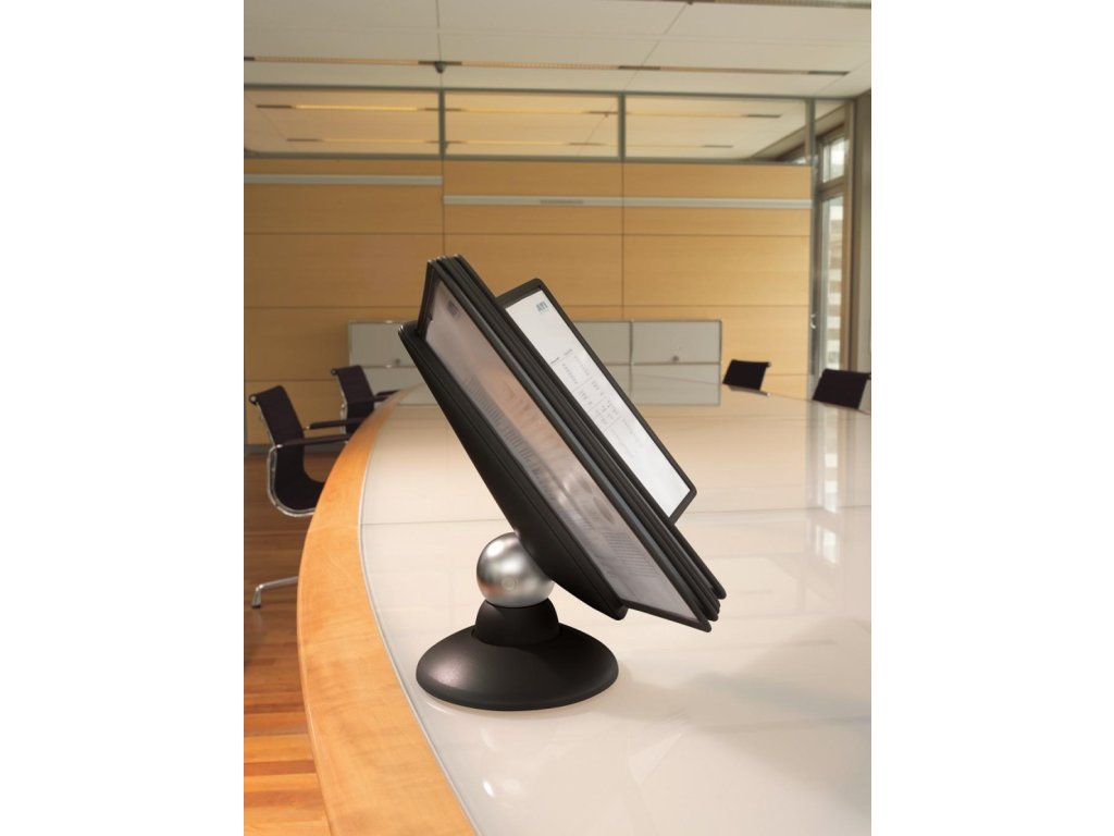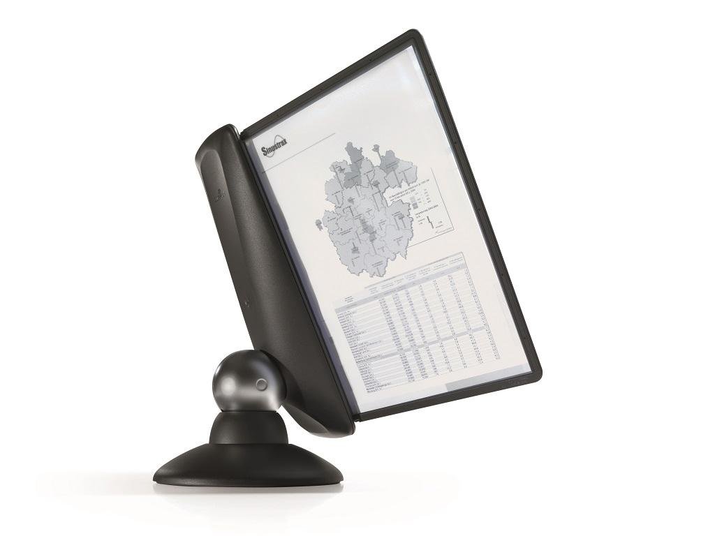 Unikátny dizajn spojený s kreatívnosťou a funkčnosťou stojana na stôl. Dodávaný s 10 panelmi. Guľový kĺb zabezpečuje bezproblémové otáčanie panelov o 360 °, uhol na čítanie nastaviteľný medzi 25 ° a 70 °. Farba čierna.Dodatočné parametre