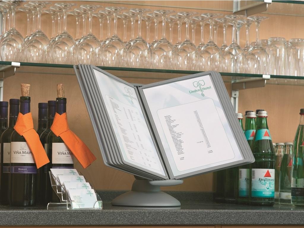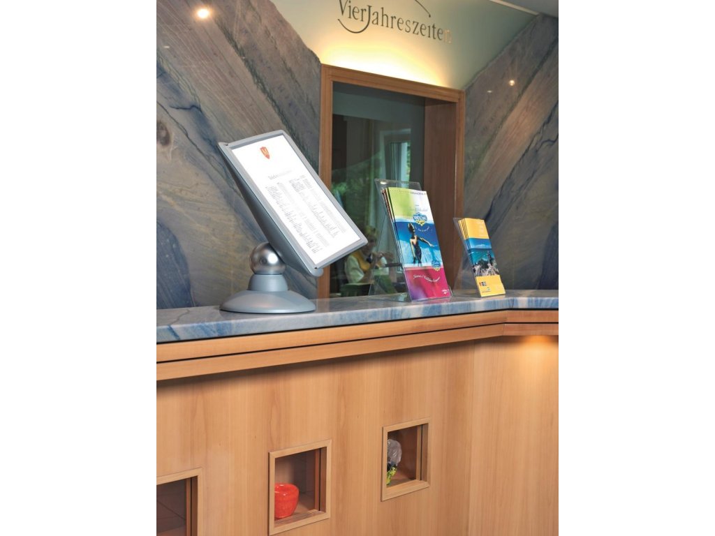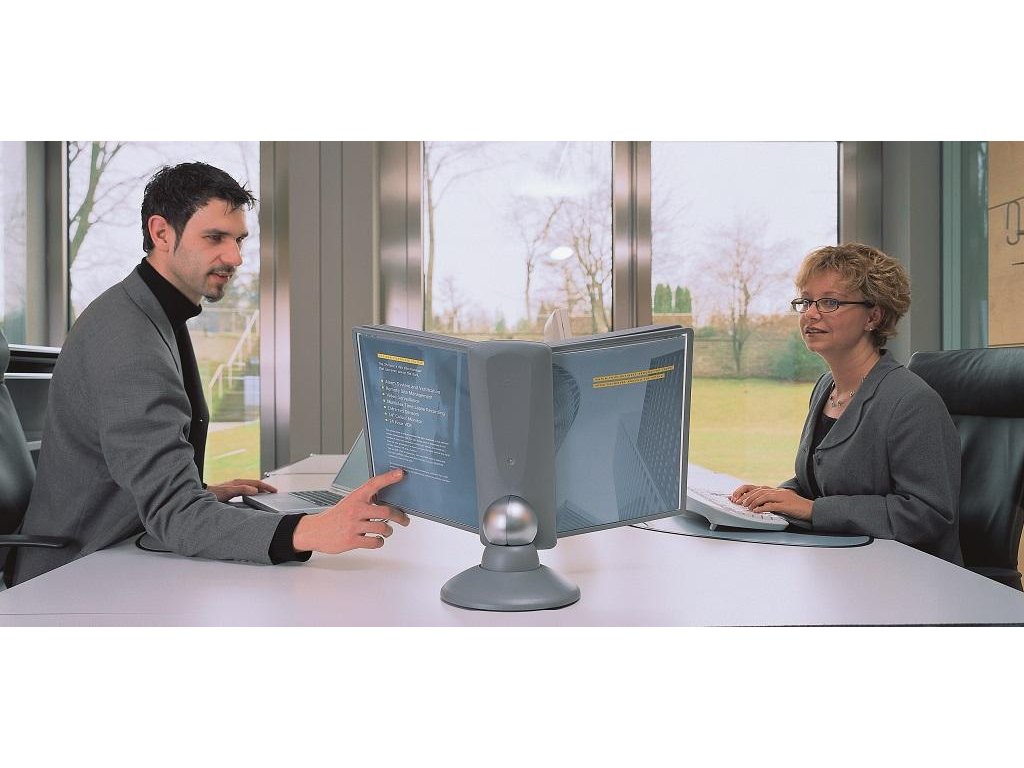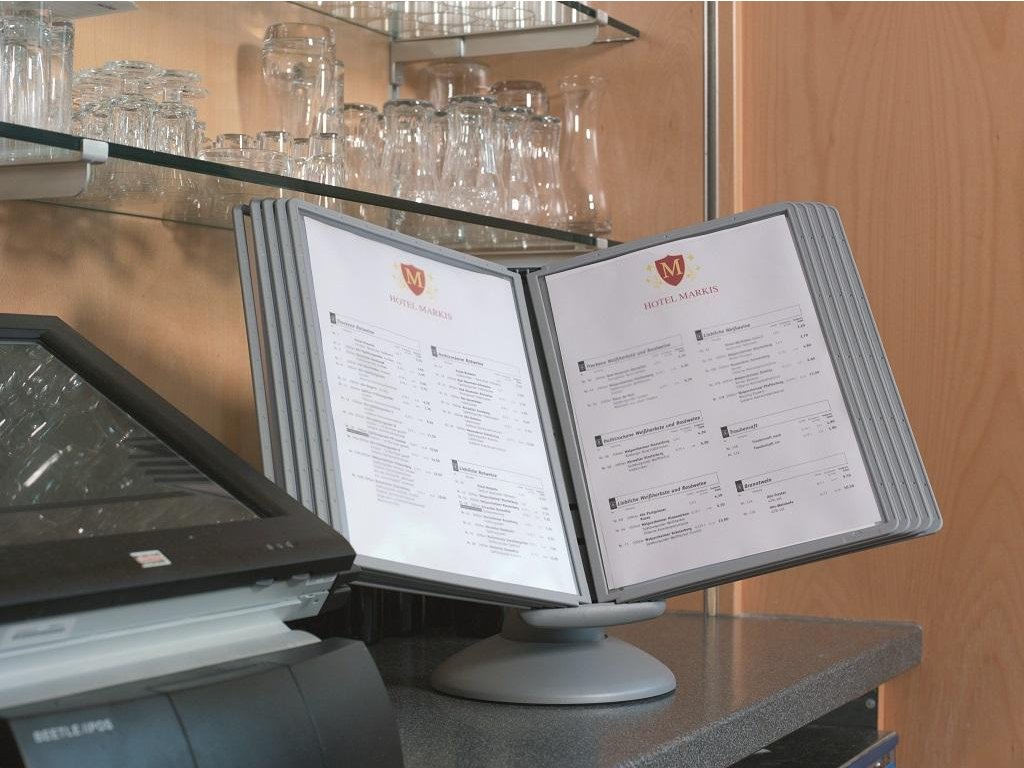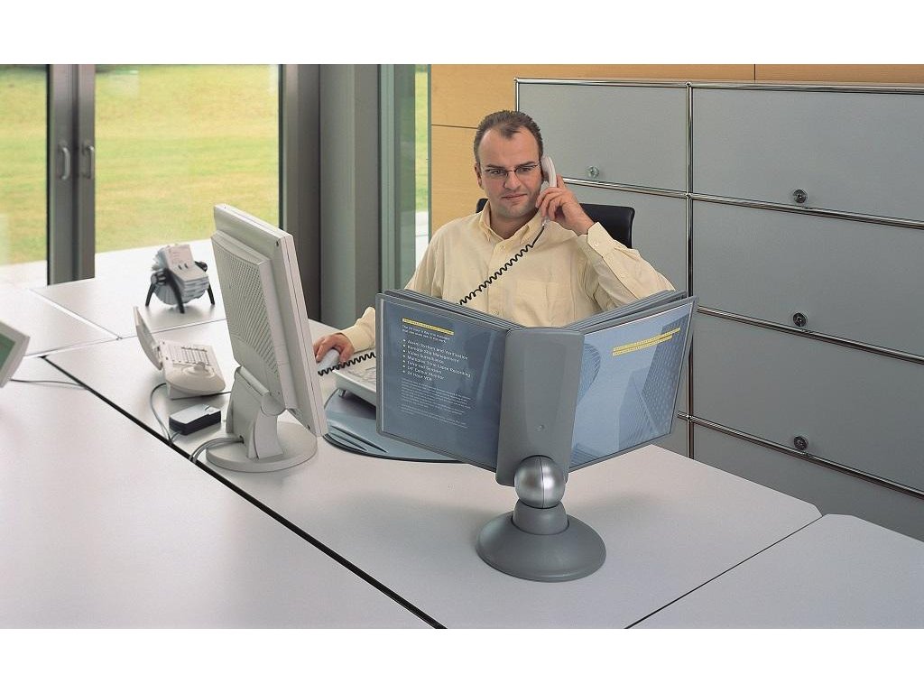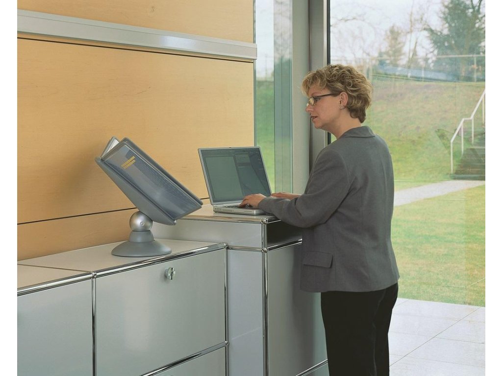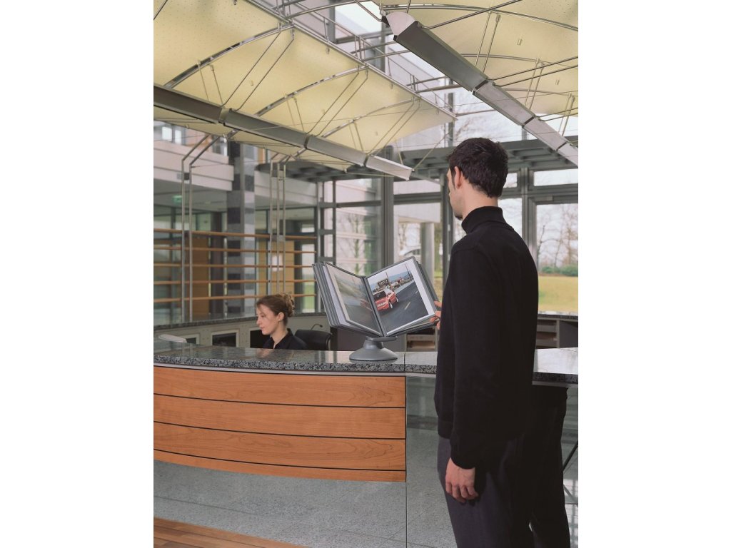 Unikátny dizajn spojený s kreatívnosťou a funkčnosťou stojana na stôl. Guľový kĺb zabezpečuje bezproblémové otáčanie panelov o 360 °, nastaviteľný uhol na čítanie medzi 25 ° a 70 °. Je dodávaný s 10 panelmi. Farba: kĺb lesklá grafitová, držiak a panely matná grafitová.Kapacita panelov: 10