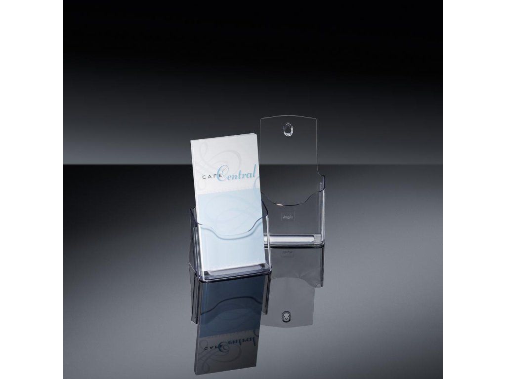 Stolný stojan s jedným odkladačom unikátneho dizajnu z vysokokvalitného akrylu. Ideálny na brožúry, katalógy a letáky. Hĺbka odkladača 30 mm. 25-ročná záruka na odolnosť voči UV žiareniu. Rozmery 125 × 200 × 75 mm. Farba číra.Dodatočné parametre