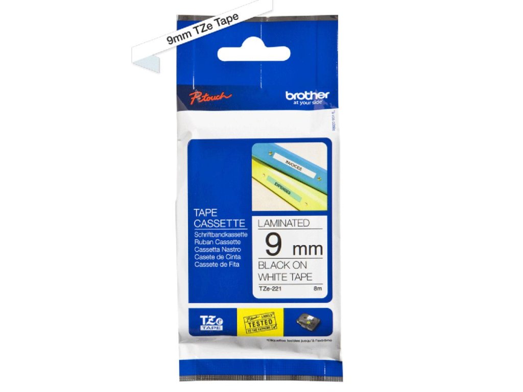 Laminovaná páska TZe vhodná pre všetky tlačiarne štítkov Brother. Odoláva teplotám od -50 do 300 °C, je odolná voči slnečnému žiareniu, vlhkosti, mechanickému poškriabaniu, prachu a iným nečistotám a olejovým kvapalinám. Dĺžka pásky 8 m.Šírka: 9 mm