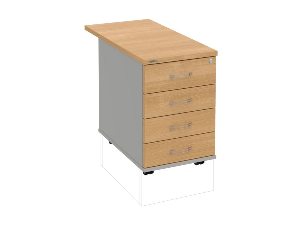Kontajnery - všetko uložené a vždy poruke. Kontajnery sa väčšinou umiestňujú pod stoly. Mobilné modely sú vybavené kolieskami, je možné ich premiestniť podľa potreby. Základným materiálom korpusov je kvalitná laminovaná drevotriesková doska hrúbky 18 mm. Pre dlhšiu životnosť je na horný diel korpusu použitá doska, ktorej hrúbka je 25 mm. Korpusy a čelá zásuviek sú chránené proti poškodeniu hranou ABS 2 mm. Horná doska ma hĺbku 80 cm. Kontajnery sú vybavené zámkom s centrálnym zamykaním. Vďaka integrovanému systému STOP-CONTROL s centrálnym zámkom u väčšiny kontajnerov sa nemusíte báť prevrhnutiu kontajnera alebo prípadného privretia ruky. Systém zaručí, že pri otvorení jednej zásuvky sa ostatné zásuvky automaticky zablokujú. Zásuvky sú z plastu, ktorý je ľahko umývateľný a vhodný pre jednoduchú údržbu. Praktickou súčasťou vrchnej zásuvky je prehľadný organizér a priestorové deliace priečky. Vaše ceruzky, sponky a ďalšie kancelárske potreby budú vždy na poriadku. Organizér a deliace priečky sú súčasťou každého kontajnera. Na kontajnery Hobis sa vzťahuje päťročná záruka.