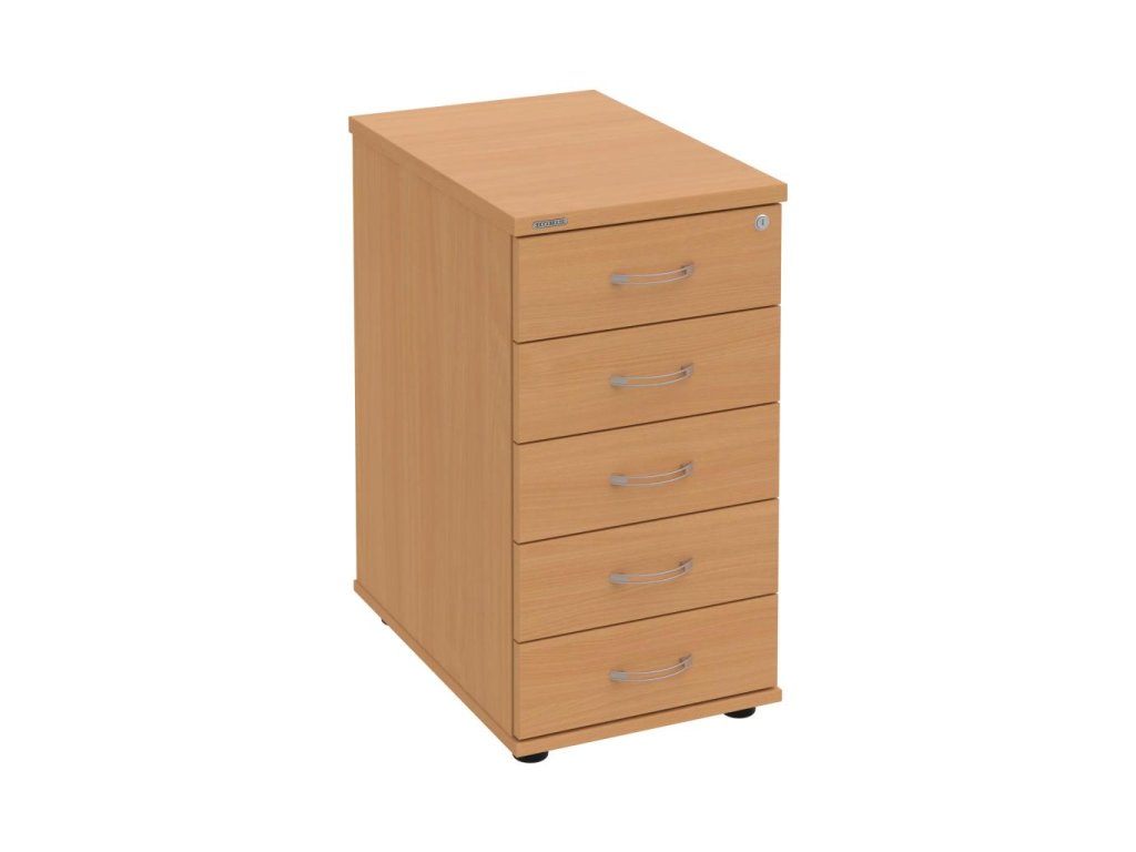 Kontajnery - všetko uložené a vždy poruke. Kontajnery sa väčšinou umiestňujú pod stoly. Mobilné modely sú vybavené kolieskami, je možné ich premiestniť podľa potreby. Základným materiálom korpusov je kvalitná laminovaná drevotriesková doska hrúbky 18 mm. Pre dlhšiu životnosť je na horný diel korpusu použitá doska, ktorej hrúbka je 25 mm. Korpusy a čelá zásuviek sú chránené proti poškodeniu hranou ABS 2 mm. Kontajnery sú vybavené zámkom s centrálnym zamykaním. Vďaka integrovanému systému STOP-CONTROL s centrálnym zámkom u väčšiny kontajnerov sa nemusíte báť prevrhnutiu kontajnera alebo prípadného privretia ruky. Systém zaručí, že pri otvorení jednej zásuvky sa ostatné zásuvky automaticky zablokujú. Zásuvky sú z plastu, ktorý je ľahko umývateľný a vhodný pre jednoduchú údržbu. Praktickou súčasťou vrchnej zásuvky je prehľadný organizér a priestorové deliace priečky. Vaše ceruzky, sponky a ďalšie kancelárske potreby budú vždy na poriadku. Organizér a deliace priečky sú súčasťou každého kontajnera. Na kontajnery Hobis sa vzťahuje päťročná záruka.