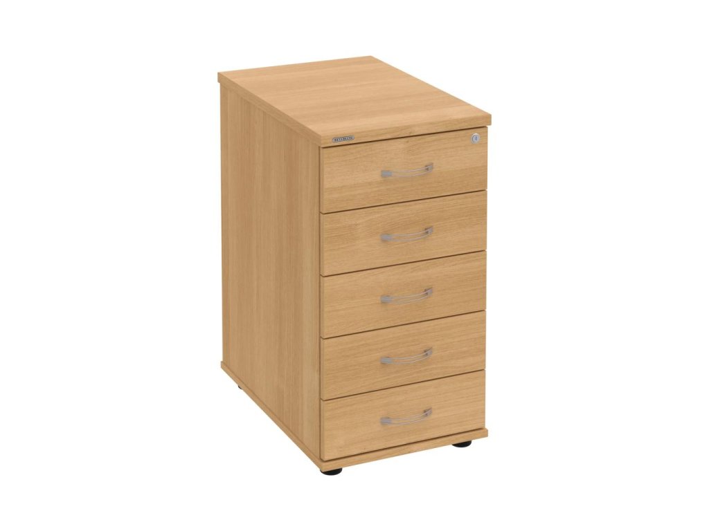 Kontajnery - všetko uložené a vždy poruke. Základným materiálom korpusov je kvalitná laminovaná drevotriesková doska hrúbky 18 mm. Aby sme zaistili dlhú životnosť, použili sme pre horný diel korpusu dosku, ktorej hrúbka je 25 mm. Kvalitnou ochranou proti poškodeniu je tiež 2mm ABS hrana na hornom i spodnom diele korpusu. Vďaka integrovanému systému STOP-CONTROL s centrálnym zámkom u väčšiny kontajnerov (netýka sa ekonomického modulu radu 100.603xy a 100.604xy) sa nemusíte báť prevrhnutiu kontajnera alebo prípadného priškripnutia rúk. Systém zaručí, že pri otvorení jednej zásuvky sa ostatné zásuvky automaticky zablokujú. Zásuvky sú z plastu, ktorý je ľahko umývateľný a vhodný pre jednoduchú údržbu. Čelá zásuviek sú z kvalitnej drevotrieskovej dosky s hrúbkou 18 mm a sú tiež vybavené odolnou 2mm ABS hranou, ktorá garantuje dostatočnú ochranu proti mechanickému poškodeniu. Praktickou súčasťou vrchnej zásuvky je prehľadný organizér a priestorové deliace priečky. Vaše ceruzky, sponky a ďalšie kancelárske potreby budú vždy na poriadku. Organizér a deliace priečky sú súčasťou každého kontajnera. Na kontajnery Hobis sa vzťahuje päťročná záruka.