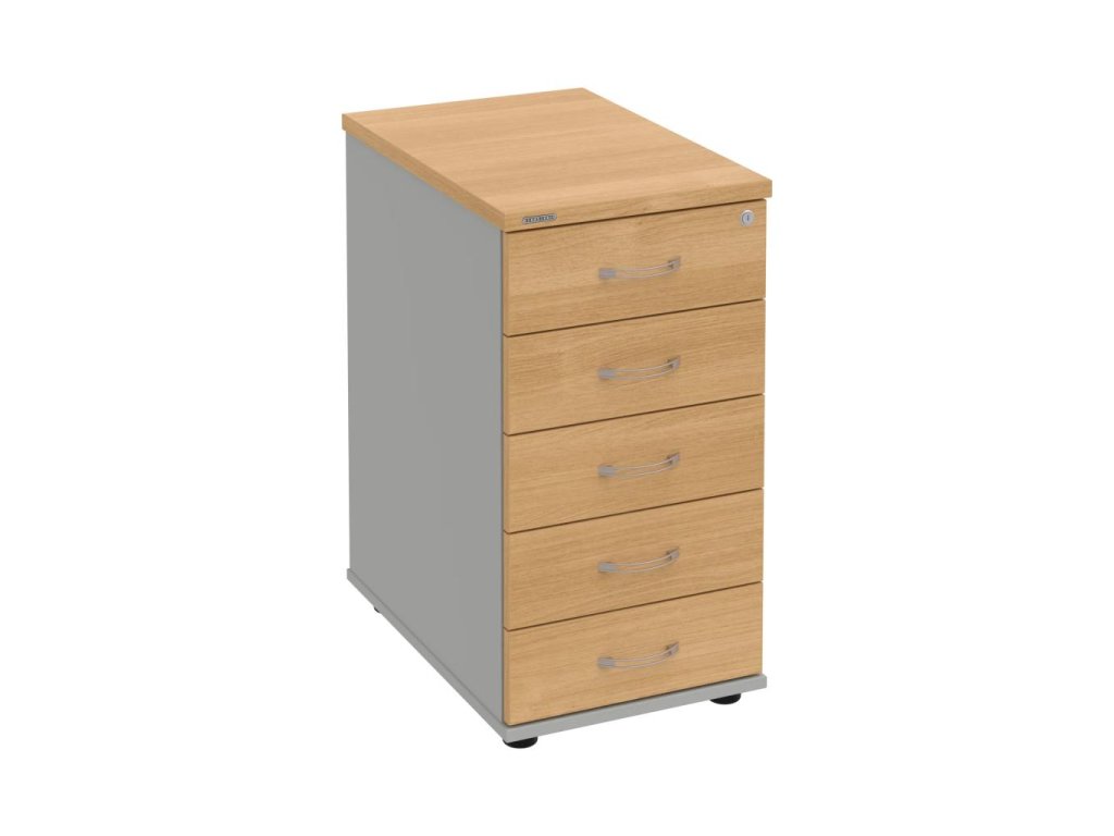 Kontajnery - všetko uložené a vždy poruke. Kontajnery sa väčšinou umiestňujú pod stoly. Mobilné modely sú vybavené kolieskami, je možné ich premiestniť podľa potreby. Základným materiálom korpusov je kvalitná laminovaná drevotriesková doska hrúbky 18 mm. Pre dlhšiu životnosť je na horný diel korpusu použitá doska, ktorej hrúbka je 25 mm. Korpusy a čelá zásuviek sú chránené proti poškodeniu hranou ABS 2 mm. Kontajnery sú vybavené zámkom s centrálnym zamykaním. Vďaka integrovanému systému STOP-CONTROL s centrálnym zámkom u väčšiny kontajnerov sa nemusíte báť prevrhnutiu kontajnera alebo prípadného privretia ruky. Systém zaručí, že pri otvorení jednej zásuvky sa ostatné zásuvky automaticky zablokujú. Zásuvky sú z plastu, ktorý je ľahko umývateľný a vhodný pre jednoduchú údržbu. Praktickou súčasťou vrchnej zásuvky je prehľadný organizér a priestorové deliace priečky. Vaše ceruzky, sponky a ďalšie kancelárske potreby budú vždy na poriadku. Organizér a deliace priečky sú súčasťou každého kontajnera. Na kontajnery Hobis sa vzťahuje päťročná záruka.