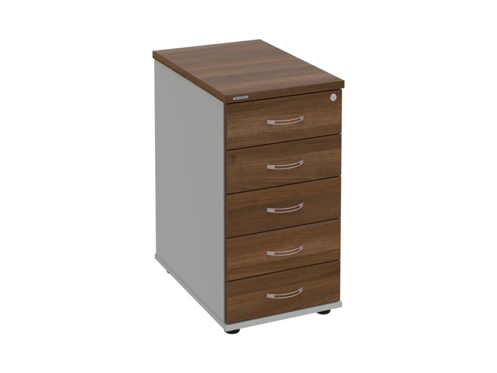 Kontajnery - všetko uložené a vždy poruke. Kontajnery sa väčšinou umiestňujú pod stoly. Mobilné modely sú vybavené kolieskami, je možné ich premiestniť podľa potreby. Základným materiálom korpusov je kvalitná laminovaná drevotriesková doska hrúbky 18 mm. Pre dlhšiu životnosť je na horný diel korpusu použitá doska, ktorej hrúbka je 25 mm. Korpusy a čelá zásuviek sú chránené proti poškodeniu hranou ABS 2 mm. Kontajnery sú vybavené zámkom s centrálnym zamykaním. Vďaka integrovanému systému STOP-CONTROL s centrálnym zámkom u väčšiny kontajnerov sa nemusíte báť prevrhnutiu kontajnera alebo prípadného privretia ruky. Systém zaručí, že pri otvorení jednej zásuvky sa ostatné zásuvky automaticky zablokujú. Zásuvky sú z plastu, ktorý je ľahko umývateľný a vhodný pre jednoduchú údržbu. Praktickou súčasťou vrchnej zásuvky je prehľadný organizér a priestorové deliace priečky. Vaše ceruzky, sponky a ďalšie kancelárske potreby budú vždy na poriadku. Organizér a deliace priečky sú súčasťou každého kontajnera. Na kontajnery Hobis sa vzťahuje päťročná záruka.