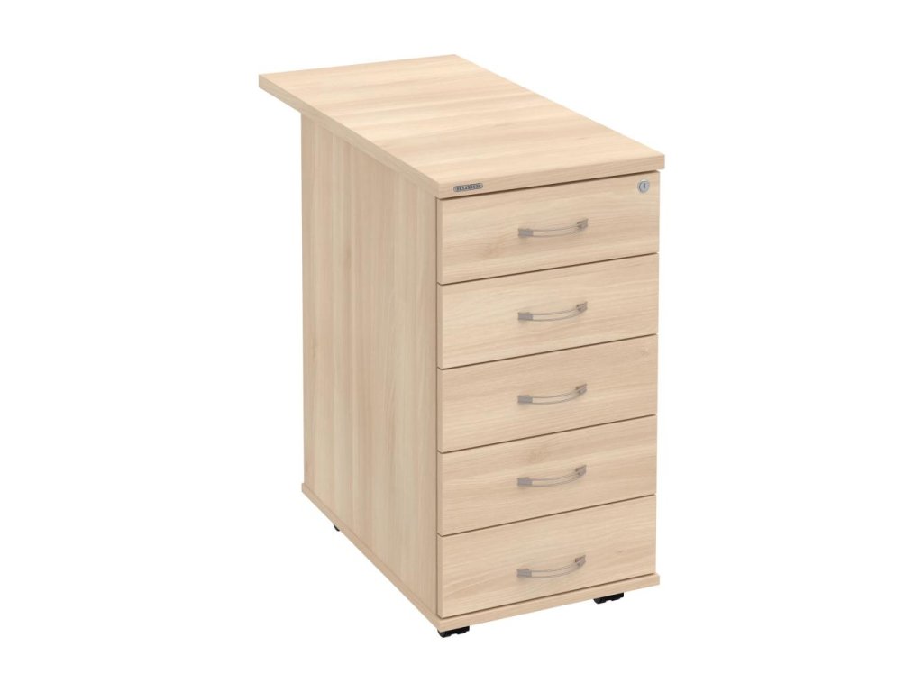 Kontajnery - všetko uložené a vždy poruke. Kontajnery sa väčšinou umiestňujú pod stoly. Mobilné modely sú vybavené kolieskami, je možné ich premiestniť podľa potreby. Základným materiálom korpusov je kvalitná laminovaná drevotriesková doska hrúbky 18 mm. Pre dlhšiu životnosť je na horný diel korpusu použitá doska, ktorej hrúbka je 25 mm. Korpusy a čelá zásuviek sú chránené proti poškodeniu hranou ABS 2 mm. Horná doska ma hĺbku 80 cm. Kontajnery sú vybavené zámkom s centrálnym zamykaním. Vďaka integrovanému systému STOP-CONTROL s centrálnym zámkom u väčšiny kontajnerov sa nemusíte báť prevrhnutiu kontajnera alebo prípadného privretia ruky. Systém zaručí, že pri otvorení jednej zásuvky sa ostatné zásuvky automaticky zablokujú. Zásuvky sú z plastu, ktorý je ľahko umývateľný a vhodný pre jednoduchú údržbu. Praktickou súčasťou vrchnej zásuvky je prehľadný organizér a priestorové deliace priečky. Vaše ceruzky, sponky a ďalšie kancelárske potreby budú vždy na poriadku. Organizér a deliace priečky sú súčasťou každého kontajnera. Na kontajnery Hobis sa vzťahuje päťročná záruka.
