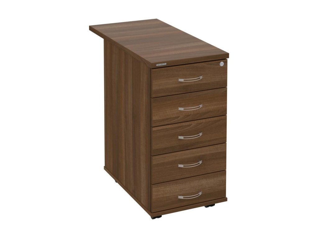 Kontajnery - všetko uložené a vždy poruke. Základným materiálom korpusov je kvalitná laminovaná drevotriesková doska hrúbky 18 mm. Aby sme zaistili dlhú životnosť, použili sme pre horný diel korpusu dosku, ktorej hrúbka je 25 mm. Kvalitnou ochranou proti poškodeniu je tiež 2mm ABS hrana na hornom i spodnom diele korpusu. Vďaka integrovanému systému STOP-CONTROL s centrálnym zámkom u väčšiny kontajnerov (netýka sa ekonomického modulu radu 100.603xy a 100.604xy) sa nemusíte báť prevrhnutiu kontajnera alebo prípadného priškripnutia rúk. Systém zaručí, že pri otvorení jednej zásuvky sa ostatné zásuvky automaticky zablokujú. Zásuvky sú z plastu, ktorý je ľahko umývateľný a vhodný pre jednoduchú údržbu. Čelá zásuviek sú z kvalitnej drevotrieskovej dosky s hrúbkou 18 mm a sú tiež vybavené odolnou 2mm ABS hranou, ktorá garantuje dostatočnú ochranu proti mechanickému poškodeniu. Praktickou súčasťou vrchnej zásuvky je prehľadný organizér a priestorové deliace priečky. Vaše ceruzky, sponky a ďalšie kancelárske potreby budú vždy na poriadku. Organizér a deliace priečky sú súčasťou každého kontajnera. Na kontajnery Hobis sa vzťahuje päťročná záruka.
