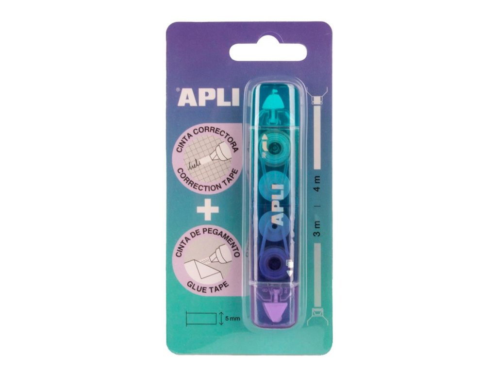 Korekčný roller a lepidlo APLI 2v1, mix farieb