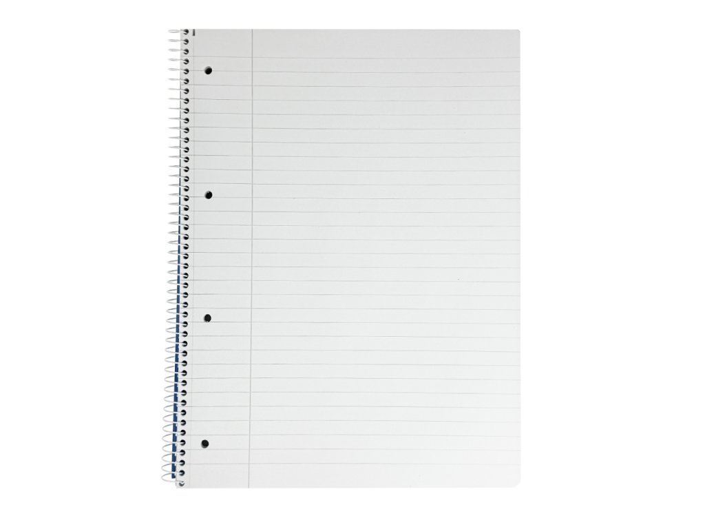 Vysokokvalitný blok formátu A4 s kovovou bočnou špirálou, vyrobený zo 100 % recyklovaného papiera s hmotnosťou 90 g / m².Úprava: Linajková