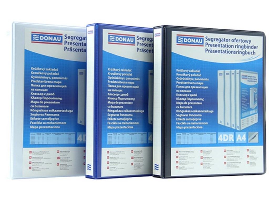 Zakladač 4-krúžkový prezentačný DONAU kartón/PP, A4/4RD/16, biely