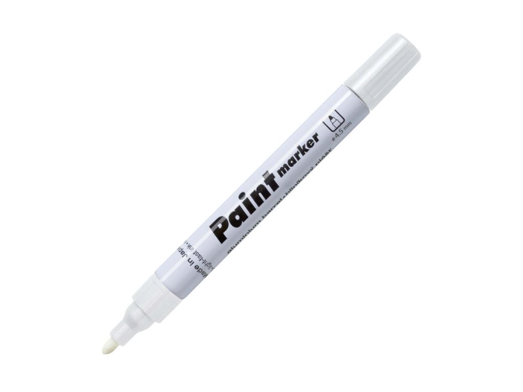 Univerzálny lakový popisovač s hliníkovým telom píše na porézne i neporézne povrchy. Svetlostály atrament po zaschnutí odolá vode, poveternostným vplyvom aj oderu. Hrot okrúhly, šírka stopy 1,5 - 2,5 mm. Väčšie balenie 10 ks v jednej farbe. Farba biela.Dodatočné parametre