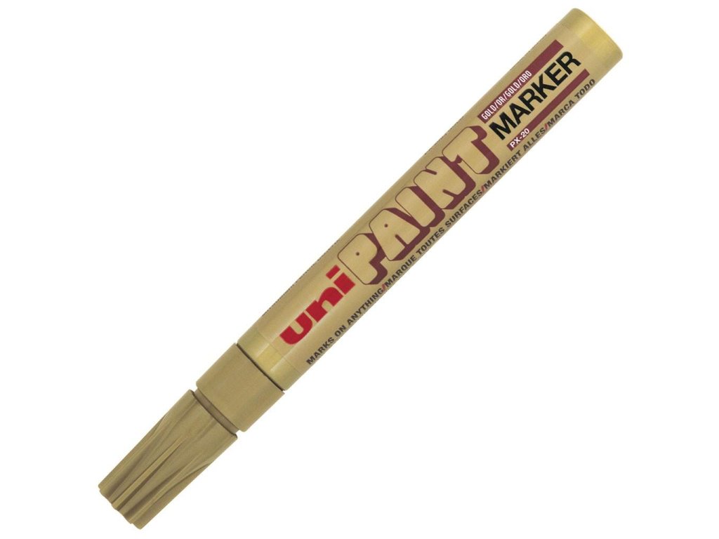 Permanentný lakový popisovač vhodný pre vodovzdorné písanie, značkovanie a kreslenie na takmer všetky materiály, odolný voči UV žiareniu. Telo hliník/ plast. Hrot okrúhly, šírka stopy 2,2 - 2,8 mm, dĺžka stopy viac než 300 m. Väčšie balenie 12 ks.Farba: zlatá.