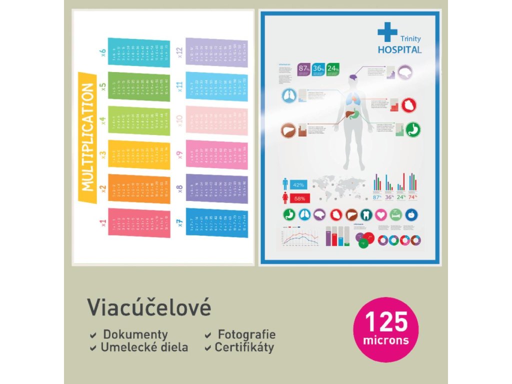 - Dlhodobá ochrana dokumentu pred nečistotou, tekutinou a vlhkosťou. Štandardná tuhosť laminácie.