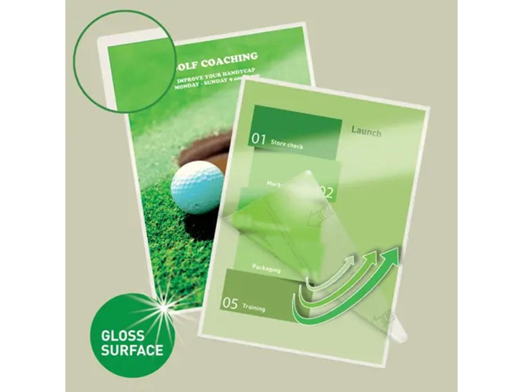 - Dlhodobá ochrana dokumentu pred nečistotou, tekutinou a vlhkosťou. Štandardná tuhosť laminácie.