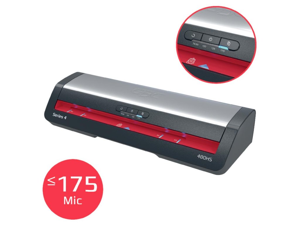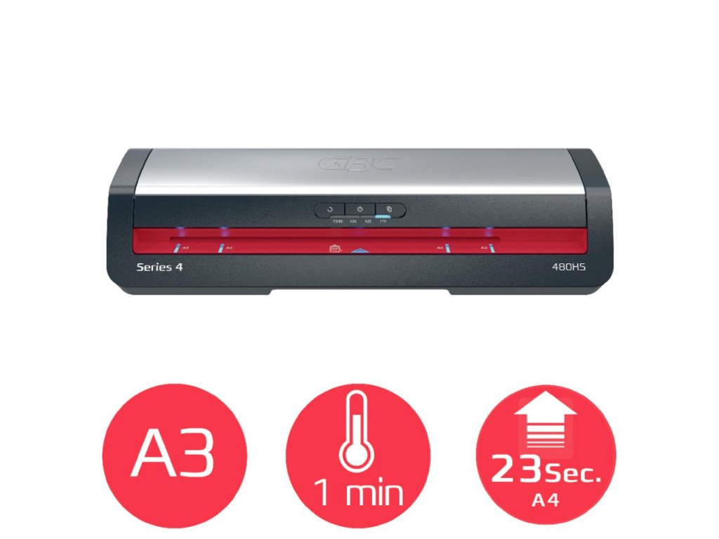 • vysokorýchlostný laminátor GBC 480HS pre formát A3 poskytuje rýchlu a spoľahlivú ochranu dokumentov a je určený do rušného kancelárskeho prostredia• vďaka rýchlemu zahrievaniu za 1 minútu a schopnosti zalaminovať 75-mikrónový list A4 len za 23 sekúnd ponúka efektívne a vysokokvalitné výsledky