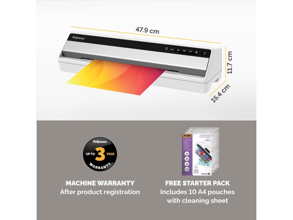 Rada laminátorov na príležitostné laminovanie s technológiou dvoch valcov laminuje fotografie a iné dokumenty do hrúbky fólie 125 mic.. Súčasťou balenia je 10 laminovacích fólií. Šírka vstupu 316 mm. Rýchlosť laminovania 30 cm/ minútu. Veľmi krátka doba nahrievania - 1 min. Predný podávač dokumentu s krytom proti prachu.Dodatočné parametre