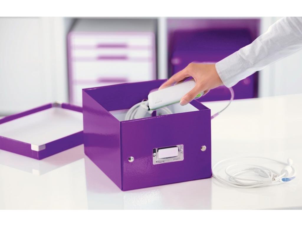 Univerzálna malá archivačná krabica (pre formát A5). Skladacia pre úsporu miesta, keď sa nepoužíva. Rámik na popisovací štítok. Laminovaný povrch a kovové rohy pre lepšiu a trvalejšiu ochranu. Moderný design, ktorý sa bude skvelo vynímať v každej kancelárii.Jednoduché zloženie a vysoká stabilita vďaka vylepšenej konštrukcii krabice. Veľkosť krabicle odpovedá bežným kancelárskym rozmerom (na formát A5). Dodajte svojmu pracovnému miestu alebo domácnosti farbu a skombinujte krabicu s ostatnými kancelárskymi výrobkami z radu Leitz WOW. Rámik na štítok pre ľahké popisovanie. Materiál pevný kartón potiahnutý polaminovaným papierom. Vnútorné rozmery (Š x V x H): 200 x 148 x 250 mm. Farba purpurová.Dodatočné parametre