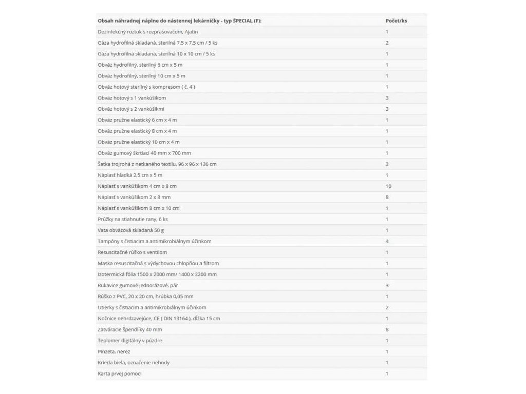 Náplň do lekárničiek Špecial (F)
