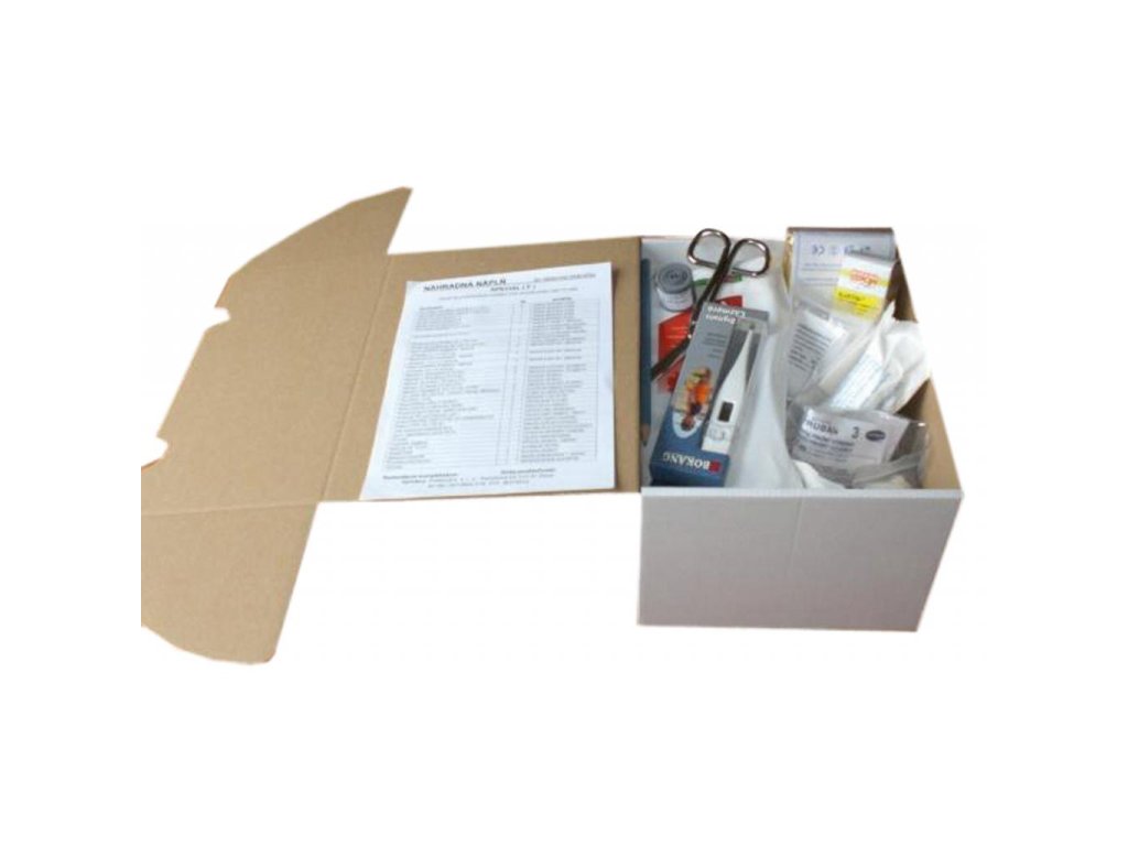 Náplň do lekárničky s rozšírenou výbavou, vhodná na pracoviská s vyššou mierou rizika úrazu, najmä na miesta so zvýšeným rizikom pádov a poranení, omrzlín, popálenín a i. Odporúčaná do výrobných podnikov, škôl, potravinárskych prevádzok, dielní, lakovní, autoservisov, opravárenských podnikov a pod.Dodatočné parametre