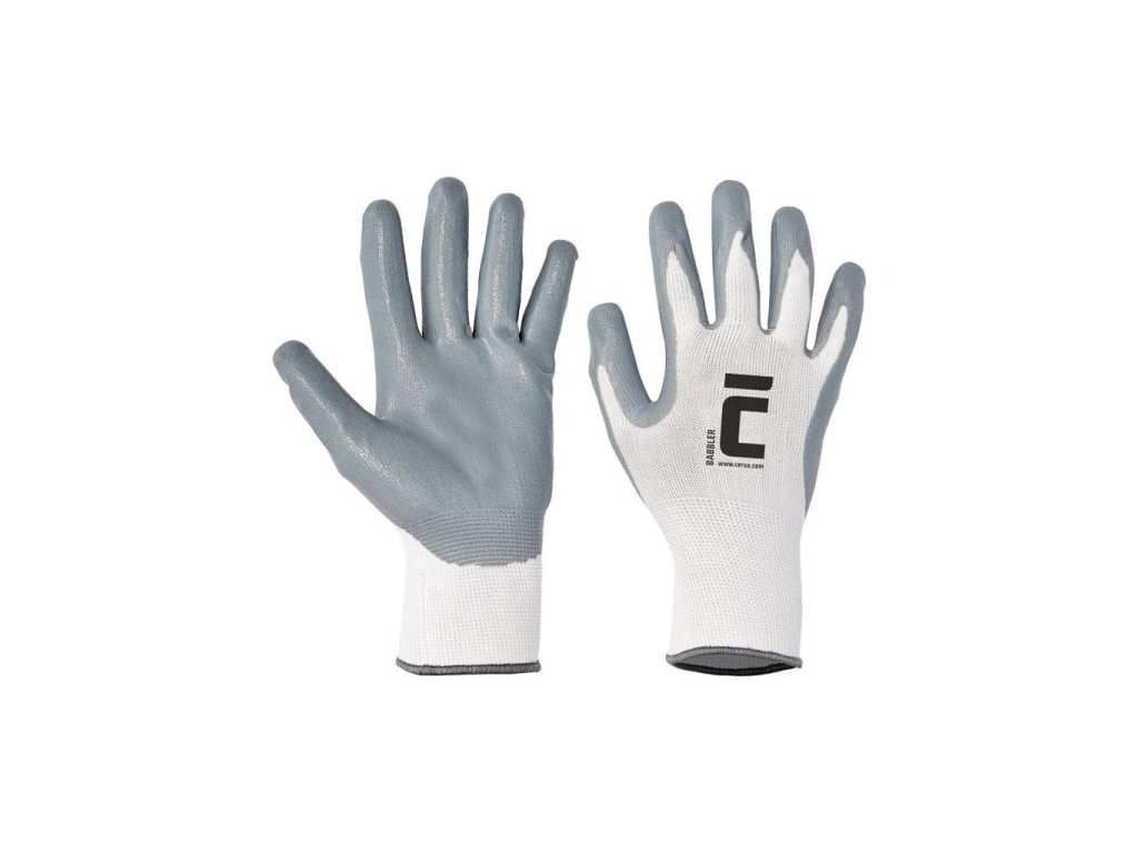 Rukavice nylon/úplet/nitril BABBLER, sivé/biele, veľ. 9/L