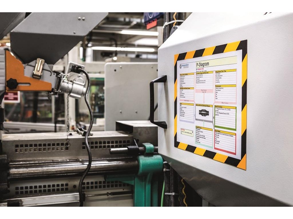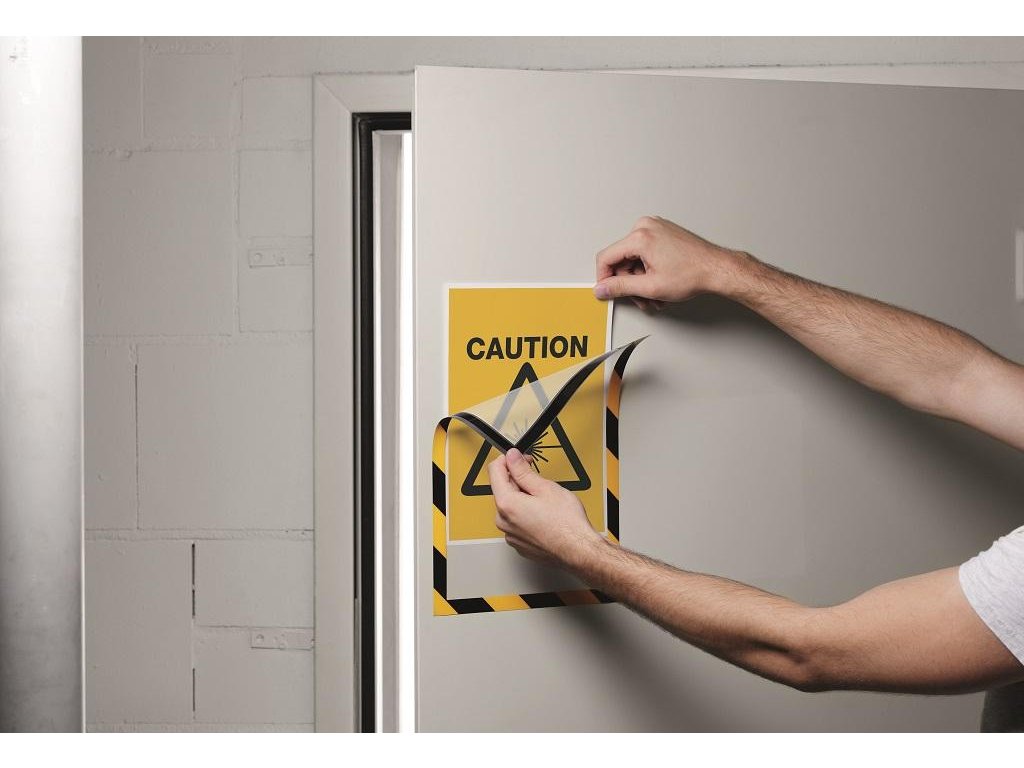 Bezpečnostný panel s magnetickou časťou na zadnej strane rámika na jednoduché a rýchle vkladanie informácie formátu A4. Vhodný na hladké magnetické povrchy, napr. magnetickú tabuľu. Farba žlto-čierna. Balenie 5 kusov.Dodatočné parametre