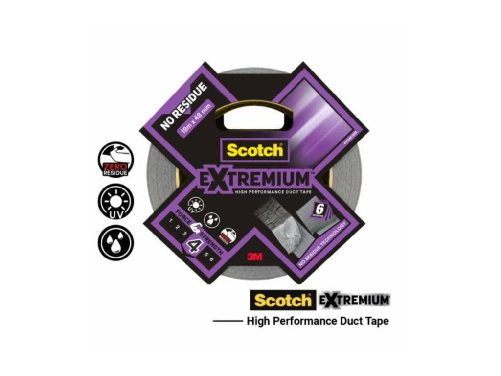 Opravná páska Scotch,Extremium, NO RESIDUE, vysokovýkonná,18,2m x 48mm Vysokoúčinná lepiaca páska Scotch® Extremium™ NO RESIDUE typu duct