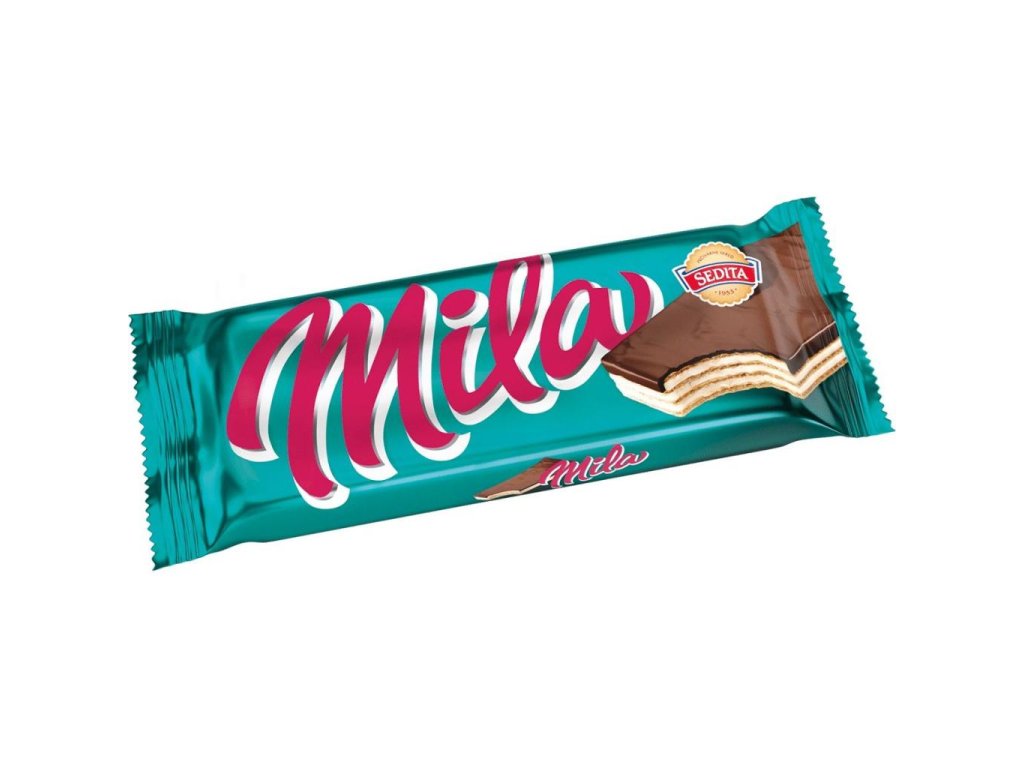 Oblátky polomáčané v kakaovej poleve s mliečnou náplňou (70%) . Hmotnosť 50 g. Väčšie balenie 56 ks.Hmotnosť: 50 g