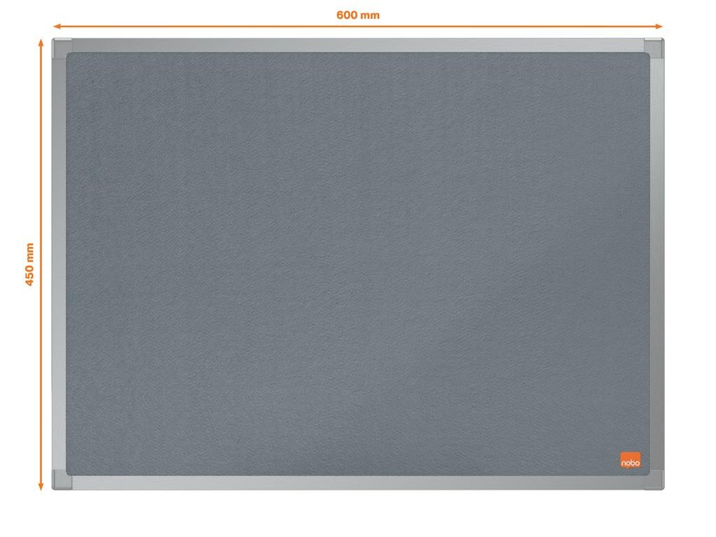 Plstená nástenka s eloxovaným hliníkovým rámom a upevnením do steny v rohoch na pripevnenie a zobrazenie vašich oznámení. Veľkosť: 600 x 450 mm. Farba sivá.Dodatočné parametre