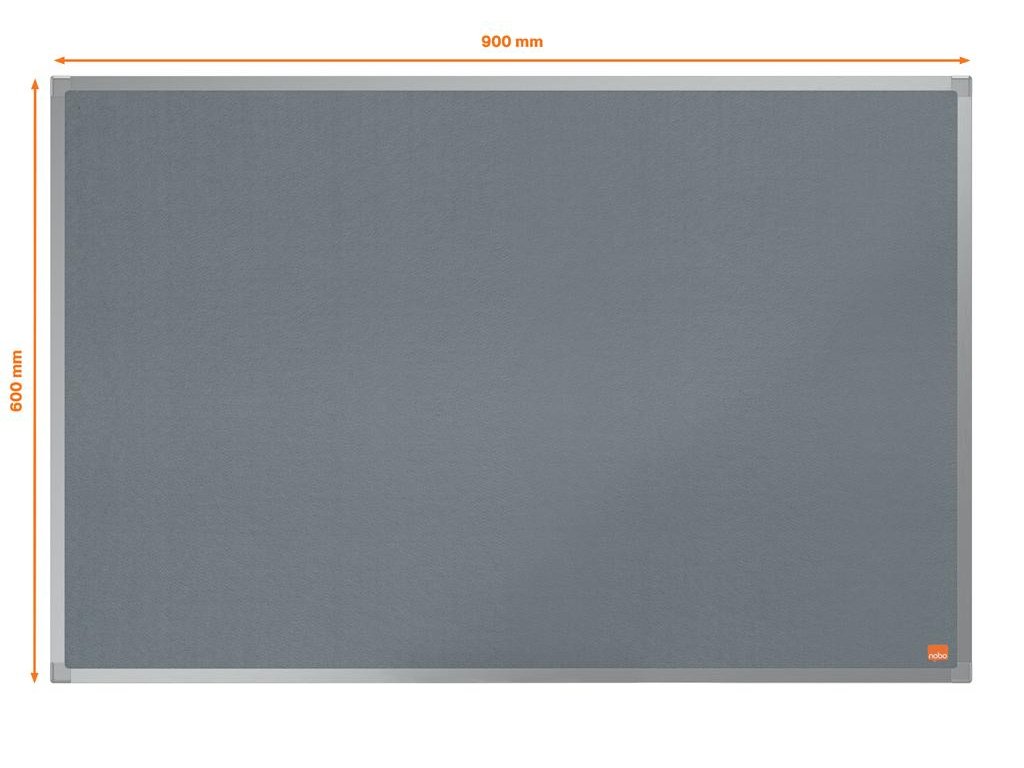 Plstená nástenka s eloxovaným hliníkovým rámom a upevnením do steny v rohoch na pripevnenie a zobrazenie vašich oznámení. Veľkosť: 900 x 600 mm. Farba sivá.Dodatočné parametre