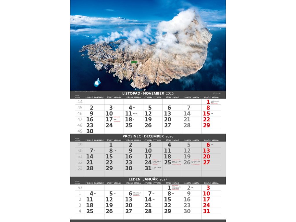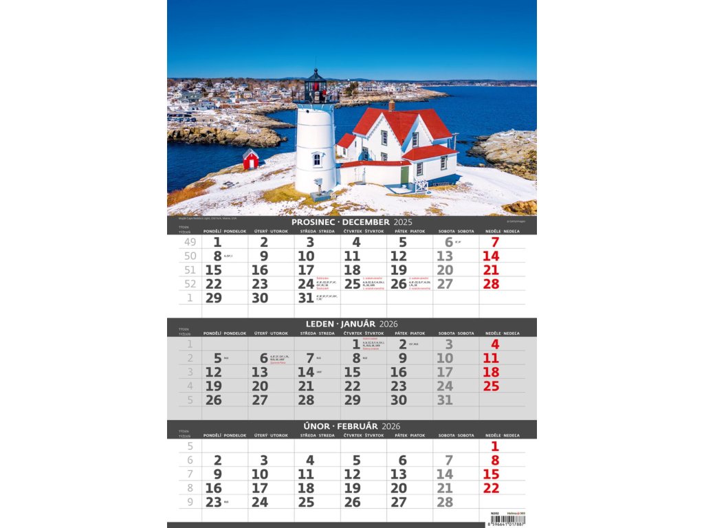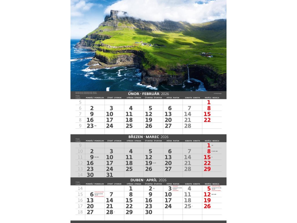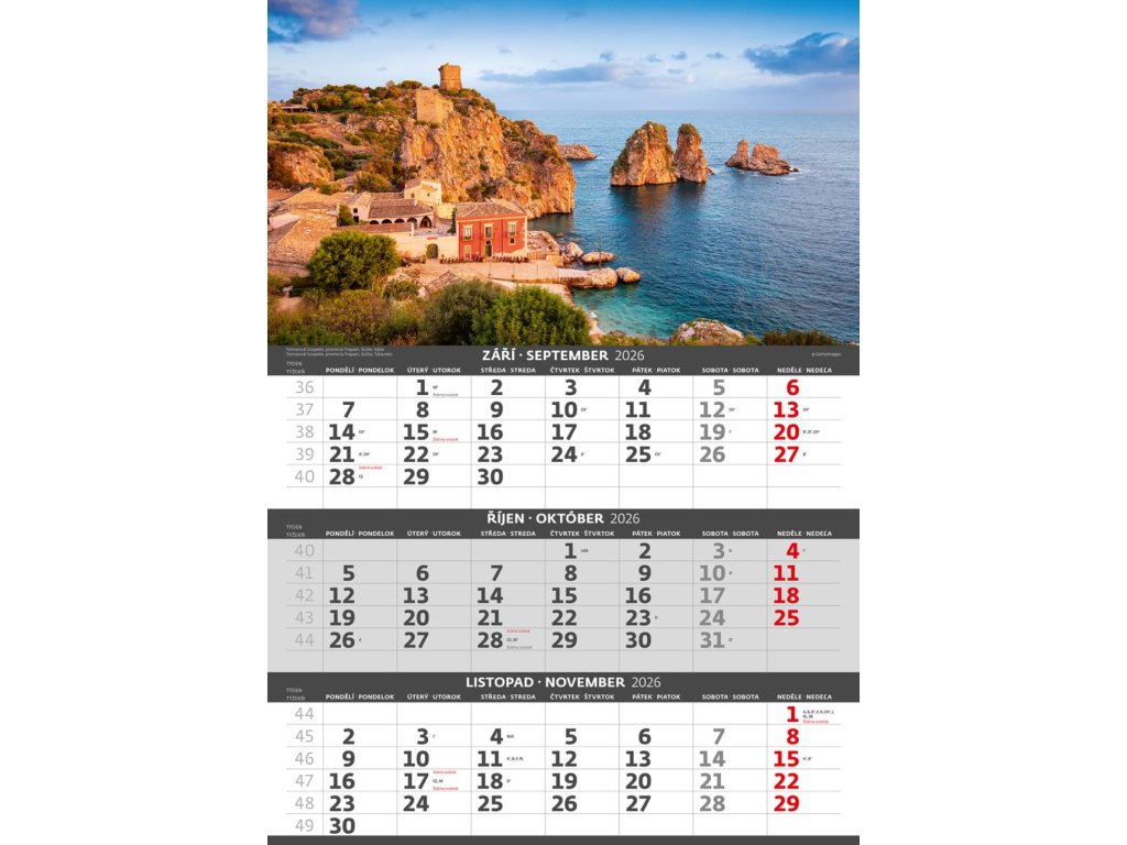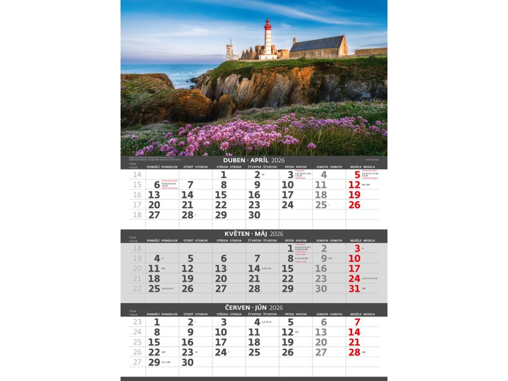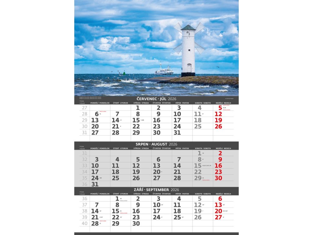 Formát kalendára: 31,5 x 45 cmKalendárium: české/slovenské trojmesačné so sviatkami európskych štátov (CZ / SK / A / B / D / F / H / CH / I / PL / RUS / UKR)