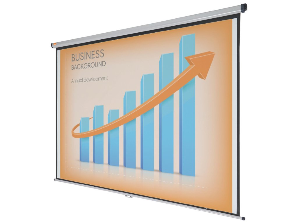 Žiarivý matne biely povrch plátna zaručuje ostrý, podrobný obraz, ktorý zreteľne uvidia všetci diváci. Dá sa ľahko zasunúť do puzdra, aby bolo chránené pred poškodením, alebo uložené, keď nie je používané. Doplnkové držiaky umožňujú inštalovať plátno pred popisovaciu tabuľu alebo ho skloniť smerom k divákom. 2400 × 1813 mm.Dodatočné parametre