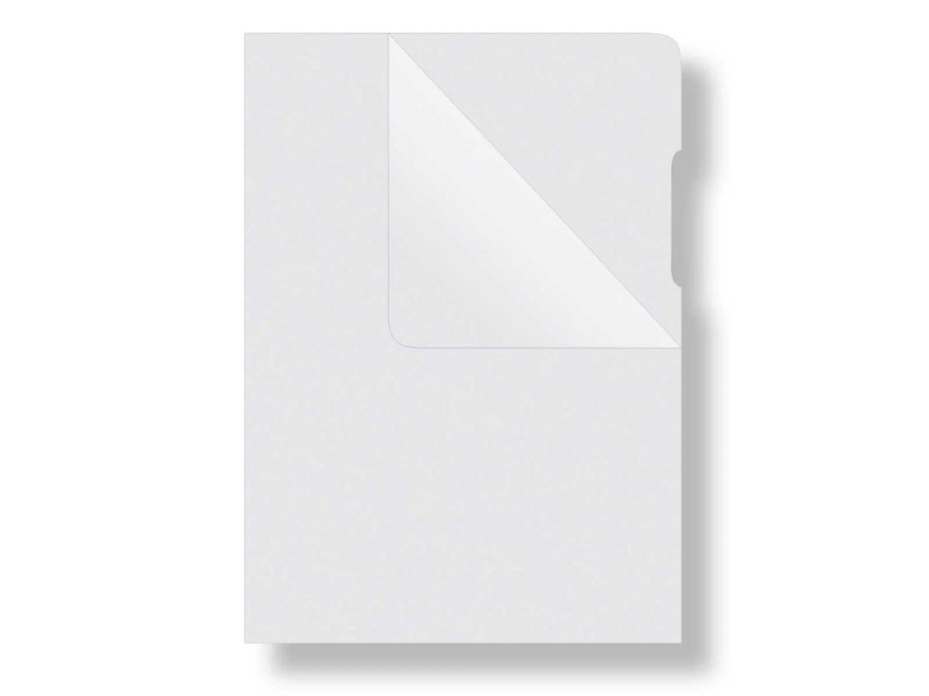 Priehľadný obal na dokumenty z tvrdého polypropylénu. Otvor zhora a po dlhšej strane („L“). Povrch lesklý mliečny, výkroj na ľahšiu manipuláciu, zaoblená horná strana. Formát A4. Balenie 100 ks.Hrúbka: 180 mic.
