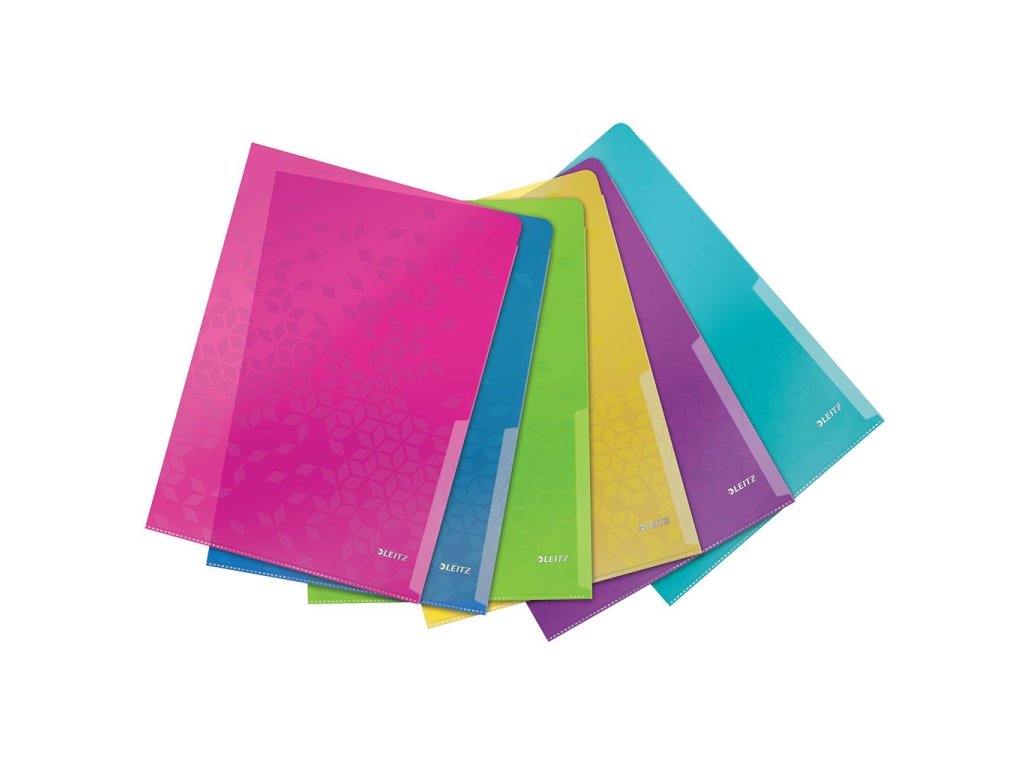 Obaly na dokumenty formátu A4 v dizajne radu Leitz WOW. Kapacita 40 listov papiera formátu A4. Materiál extrémne odolná a pevná embosovaná PP fólia hrúbky 0,20 mm. Balenie 6 ks v mixe farieb (ľadová modrá, metalická modrá, metalická oranžová, metalická zelená, metalická ružová a purpurová).Dodatočné parametre