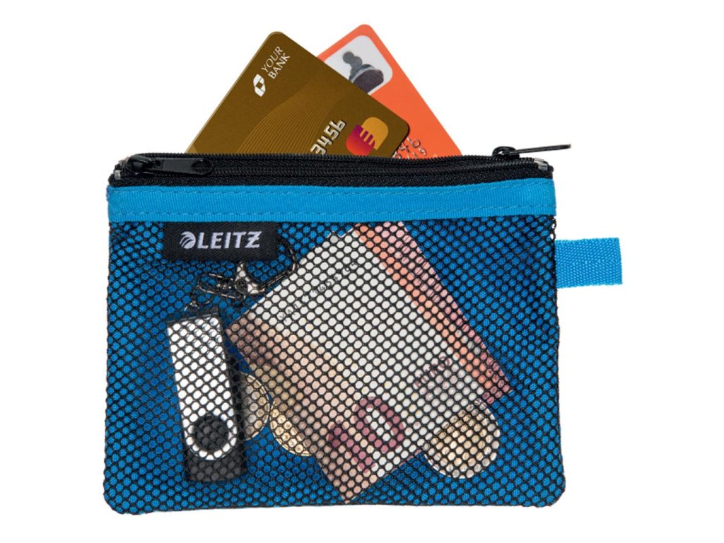 Vysokokvalitné puzdrá s 2 priehradkami na organizáciu a ochranu menších osobných vecí, ako sú občiansky preukaz alebo platobné karty, vnútri nepriehľadnej priehradky a slúchadiel alebo káblov vnútri sieťovanej priehradky. Farba modrá.`Súčasť radu Leitz WOW - široký sortiment výrobkov na organizáciu práce v kancelárii aj na cestách v nápadných a štýlových farbách