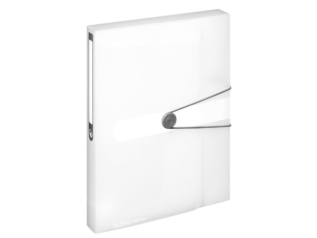 Box z polypropylénu Easy Orga na dokumenty formátu A4. Kapacita 400 listov, šírka chrbta 4 cm. Zatváranie sivou gumičkou o sivý plastový krúžok, nalepený chrbtový štítok na popis obsahu. Väčšie balenie 10 ks. Farba číra.Dodatočné parametre