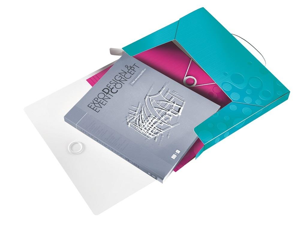 Nepriehľadný polypropylénový box na prenos objemnejších spisov, cenníkov, katalógov a pod. do formátu A4. V dizajne rady WOW v žiarivých farbách. Praktické zatváranie gumičkou na kovový krúžok. Rozmery (v × h × š) 330 × 250 × 37 mm. Väčšie balenie 5 ks. Farba ľadovo modrá.Dodatočné parametre