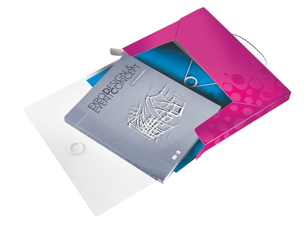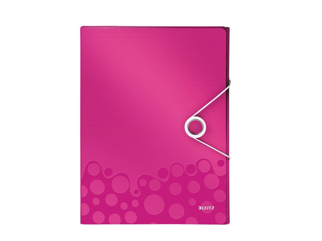 Nepriehľadný polypropylénový box na prenos objemnejších spisov, cenníkov, katalógov a pod. do formátu A4. V dizajne rady WOW v žiarivých farbách. Praktické zatváranie gumičkou na kovový krúžok. Rozmery (v × h × š) 330 × 250 × 37 mm. Väčšie balenie 5 ks. Farba metalická ružová.Dodatočné parametre