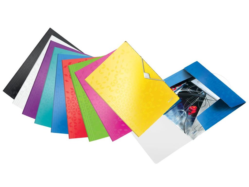 Trojchlopňový obal na dokumenty do formátu A4 z polypropylénu s dlhou životnosťou. V dizajne rady WOW v žiarivej farbe. Uzatváranie uchytením na gumičku. Kapacita 150 listov. Väčšie balenie 10 ks. Farba červená.Dodatočné parametre