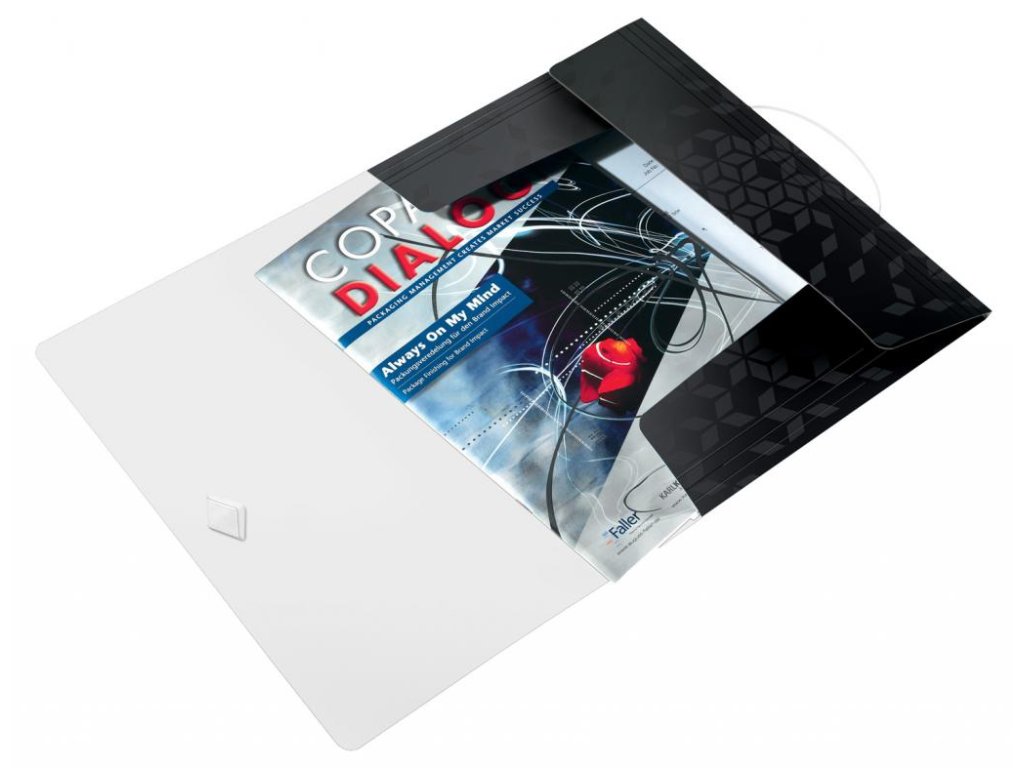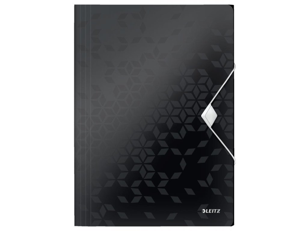 Trojchlopňový obal na dokumenty do formátu A4 z polypropylénu. V dizajne rady WOW v žiarivých farbách. Uzatváranie uchytením na gumičku. Kapacita 150 listov. Väčšie balenie 10 ks. Farba čierna.Dodatočné parametre